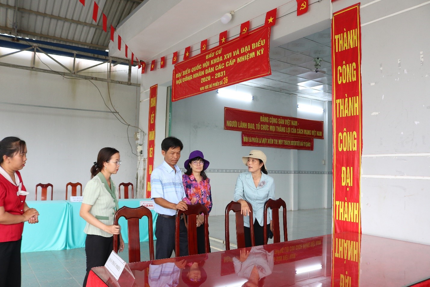 Tại các nơi đến, đoàn đã kiểm tra công tác chuẩn bị cuộc bầu cử đại biểu Quốc hội khóa XVI và đại biểu Hội đồng nhân dân các cấp nhiệm kỳ 2026 – 2031, cụ thể, là việc bố trí khu vực bỏ phiếu, công tác trang trí, niêm yết danh sách cử tri, danh sách và tiểu sử tóm tắt của người ứng cử, cũng như các phương án đảm bảo an ninh trật tự, bảo đảm cơ sở vật chất, trang thiết bị cho các khu vực bỏ phiếu.