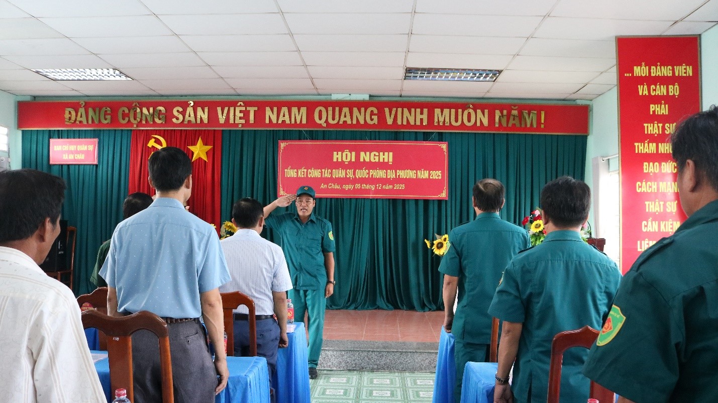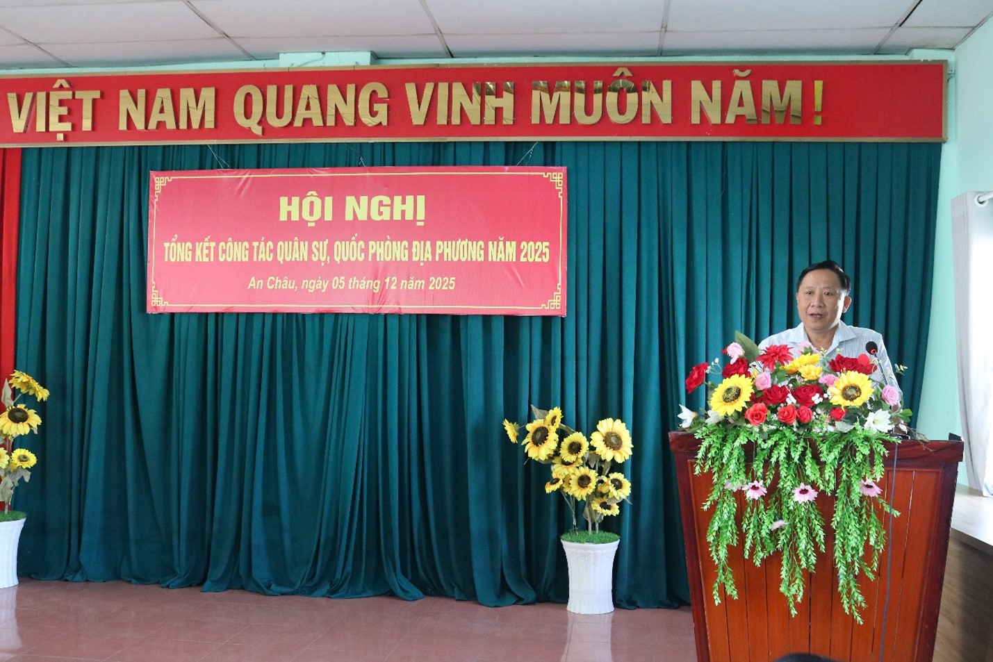 Chiều ngày 05-12-2025, Ban Chỉ huy quân sự xã An Châu tổ chức hội nghị tổng kết công tác quân sự, quốc phòng địa phương và triển khai, phương hướng, nhiệm vụ năm 2026. Đồng chí Thượng tá Nguyễn Minh Châu – Phó Chỉ huy trưởng, Tham mưu trưởng, Ban Chỉ huy Phòng thủ Khu vực 2- Long Xuyên; đồng chí Lê Hồ Ngọc Trung – Phó Bí thư Thường trực Đảng ủy xã; đồng chí Hồ Hữu Tài – Phó Bí thư Đảng ủy, Chủ tịch UBND xã; lãnh đạo các phòng, ban chuyên môn; các ấp và cán bộ, chiến sĩ tham dự.