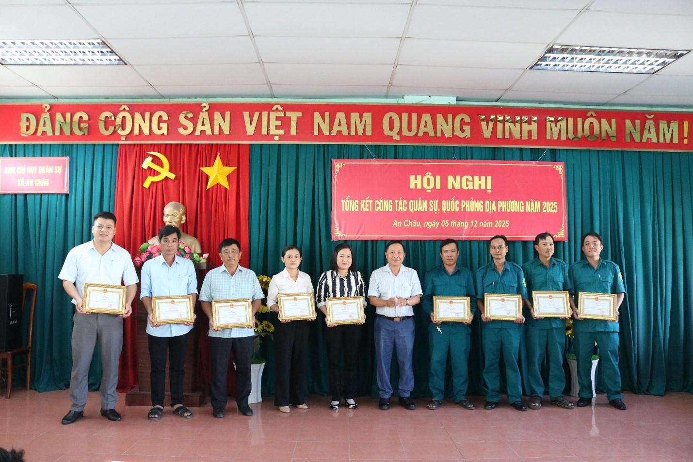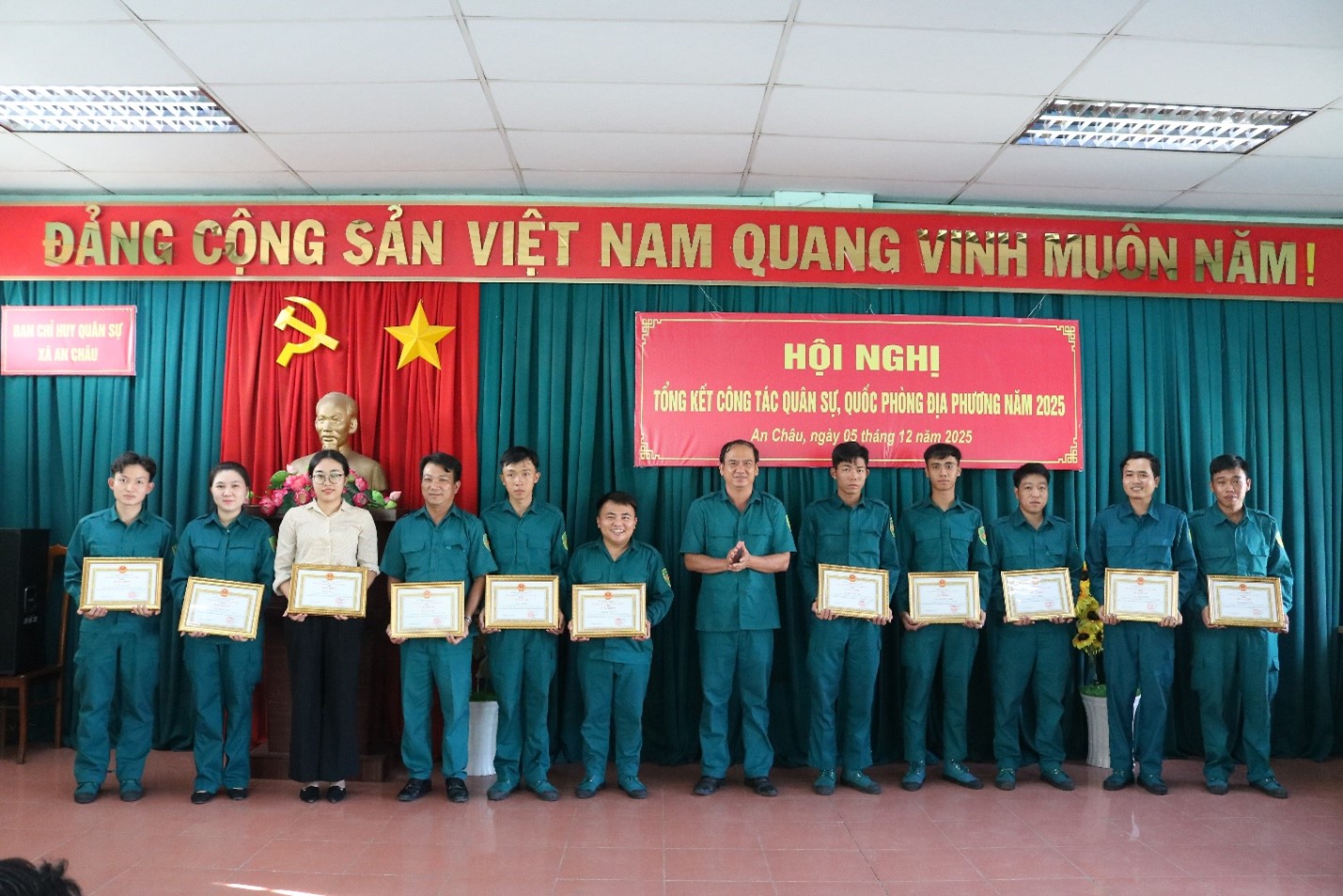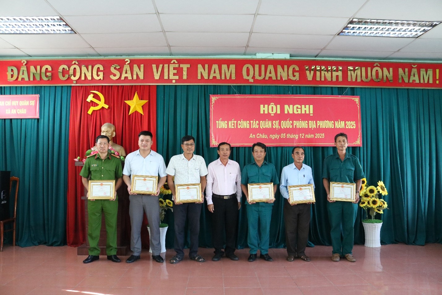 Dịp này, Ban Chỉ huy Quân sự xã An Châu đã trao giấy khen cho 8 tập thể và 31 cá nhân đã có thành tích xuất sắc trong công tác quân sự, quốc phòng địa phương năm 2025.