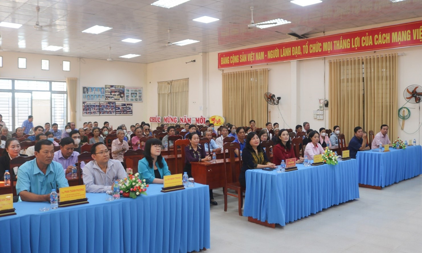 Lãnh đạo huyện Châu Thành trao thư cảm tạ và hoa cho các đơn vị tài trợ