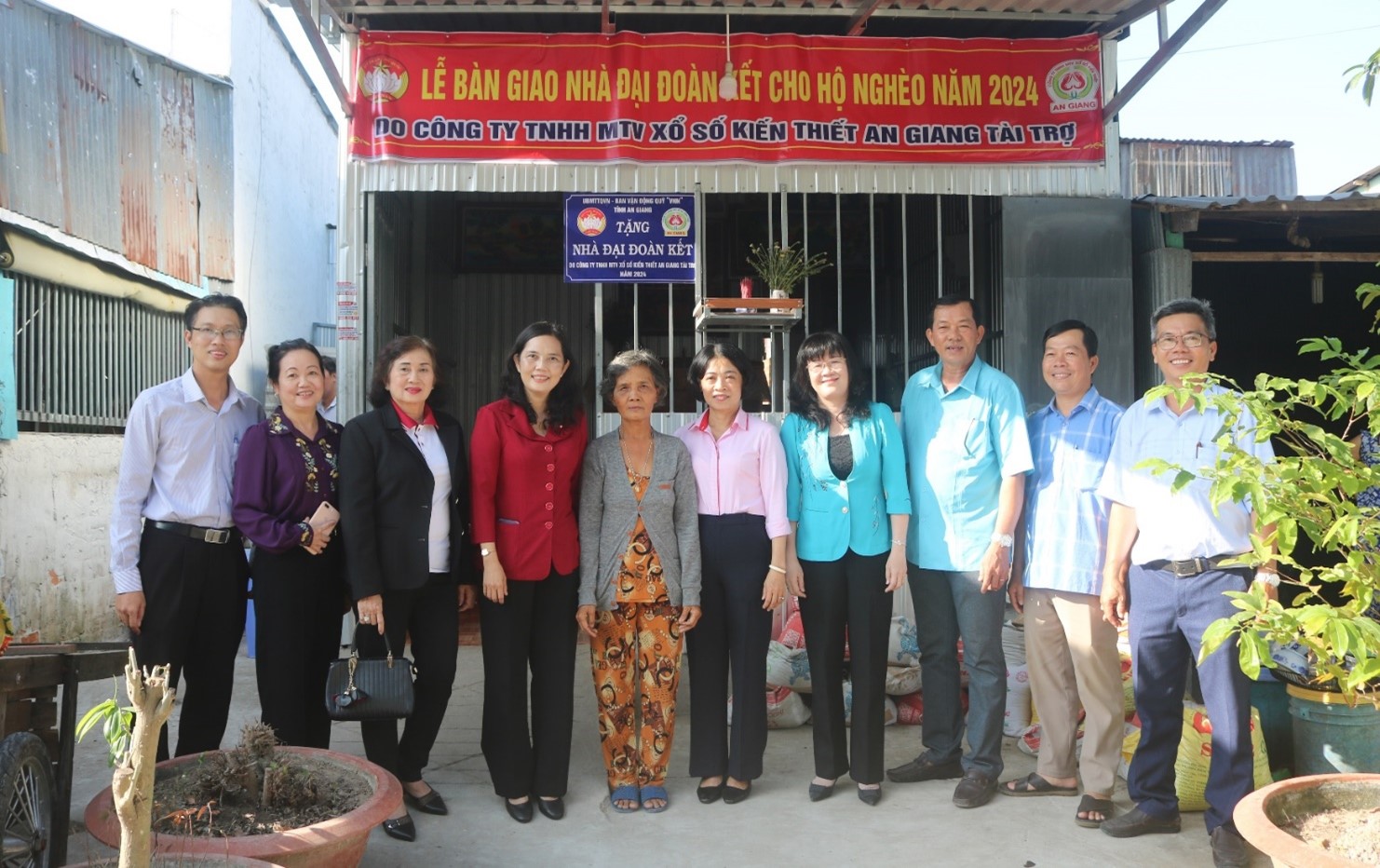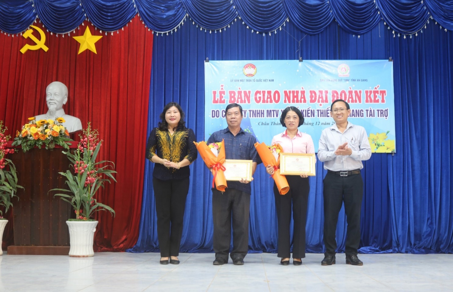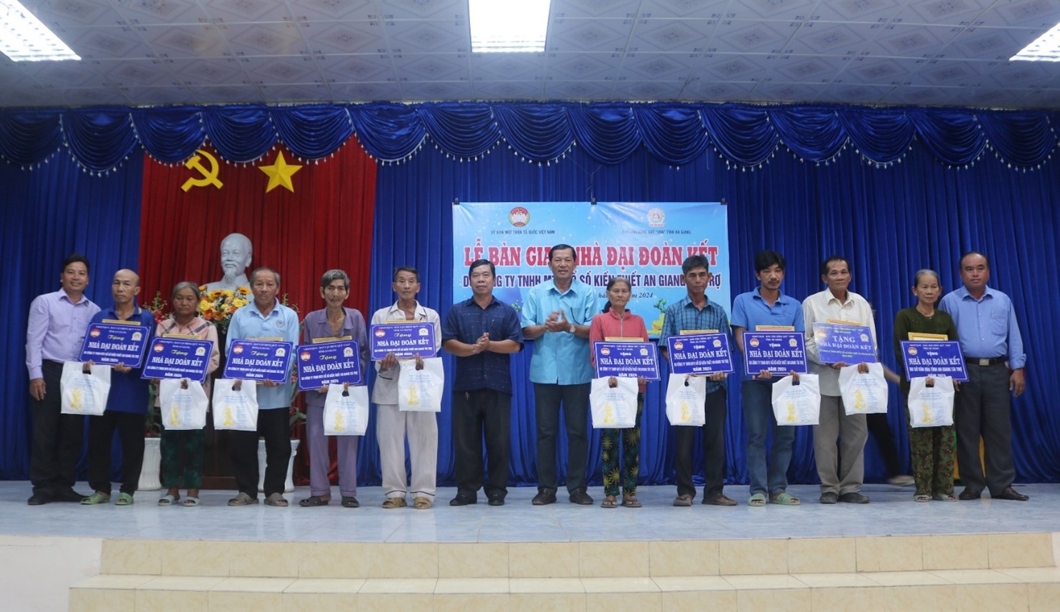 Chiều ngày 17-12-2024, tại xã Cần Đăng, Ủy ban MTTQ Việt Nam tỉnh phối hợp cùng Sở Văn hóa, Thể thao và Du lịch và Ủy ban MTTQ Việt Nam huyện Châu Thành tổ chức bàn giao 52 căn nhà Đại đoàn kết cho các hộ nghèo trên địa bàn huyện, từ nguồn tài trợ của Công ty TNHH MTV Xổ số Kiến thiết An Giang. Tham dự có đồng chí Đặng Thị Hoa Rây - Ủy viên Ban Thường vụ Tỉnh ủy, Chủ tịch Ủy ban MTTQ Việt Nam tỉnh; Đồng chí Lê Bích Phượng - Tỉnh ủy viên, Bí thư Huyện ủy Châu Thành; đồng chí Lê Kỳ Quang - Phó Bí thư Huyện ủy, Chủ tịch UBND huyện; lãnh đạo Ủy ban MTTQ Việt Nam huyện; đại diện Sở Văn hóa, Thể thao và Du lịch; bà Phan Thị Minh Hiếu - Phó Giám đốc Công ty TNHH MTV Xổ số Kiến thiết An Giang; lãnh đạo các xã, thị trấn cùng 52 hộ dân được trao nhà cùng tham dự.