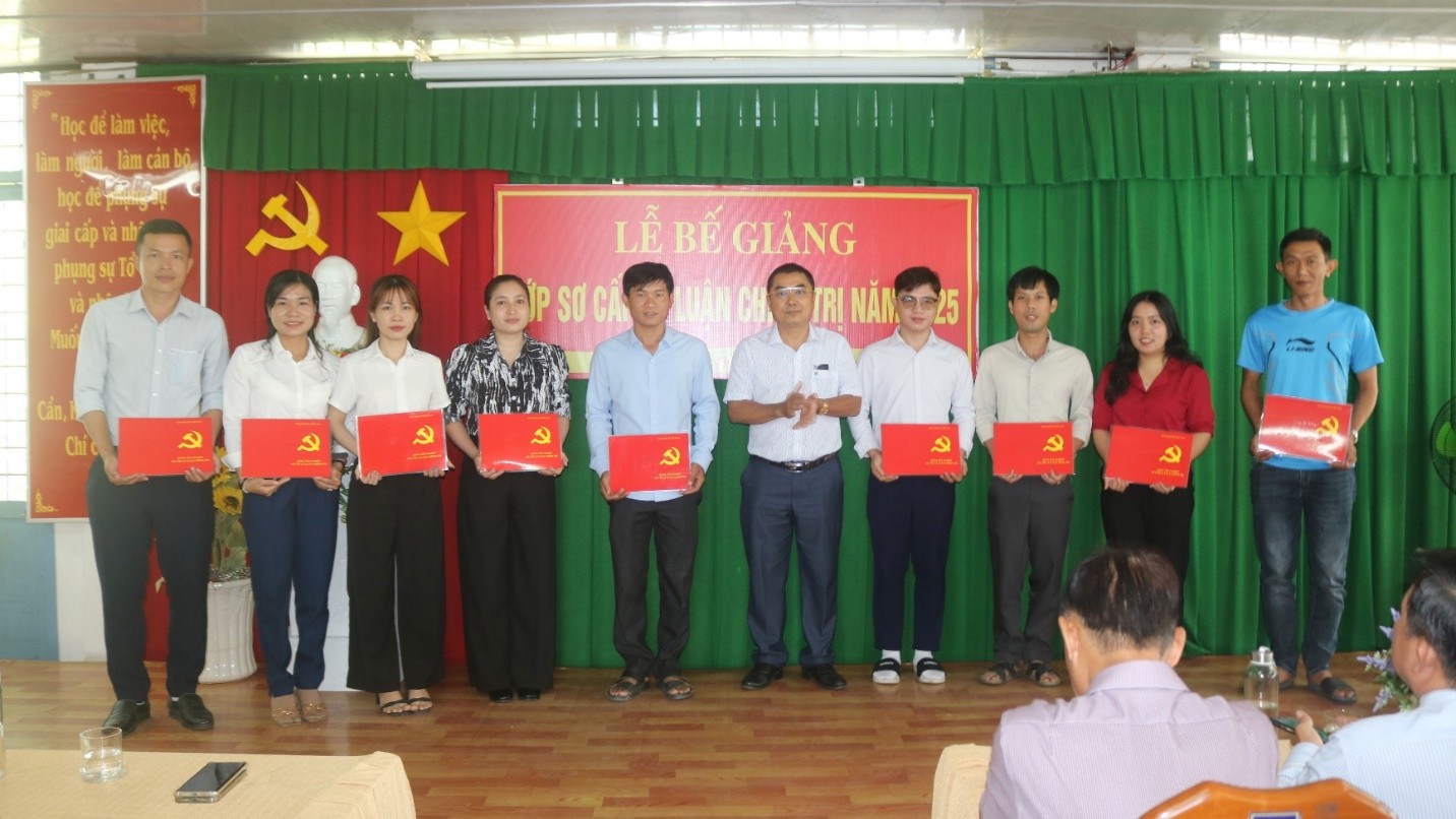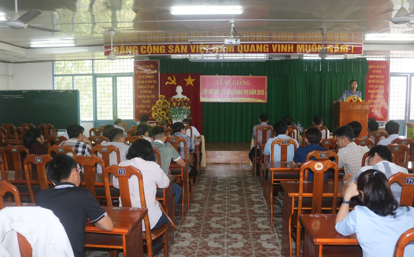 Tham dự lớp Sơ cấp lý luận chính trị khóa I, năm 2025 có 76 học viên là cán bộ, đảng viên của các tổ chức cơ sở Đảng, các cơ quan, đơn vị trên địa bàn huyện và cán bộ, chiến sĩ Tiểu đoàn 3, Trung đoàn Cảnh sát cơ động Tây Nam Bộ. Lớp học tập trung 2 đợt từ 13/1/2025 đến 27/2/2025. Khoá học đã hoàn thành Chương trình học gồm 18 Chuyên đề theo Chương trình Sơ cấp lý luận chính trị do Ban Tuyên giáo Trung ương biên soạn với các nội dung cơ bản về Chủ nghĩa Mác - Lênin, tư tưởng Hồ Chí Minh; về cách mạng giải phóng dân tộc, xây dựng khối Đại đoàn kết toàn dân tộc; về lịch sử, đường lối, chủ trương, chính sách của Đảng… Trong mỗi Chuyên đề, các giảng viên lồng ghép những vấn đề thời sự, chính trị cần thiết, cơ bản, phù hợp với đối tượng và thực tiễn công tác, giúp cho các học viên nâng cao nhận thức về lý luận chính trị, tạo sự chuyển biến trong hành động, xác định được vai trò, trách nhiệm của bản thân để tiếp tục tu dưỡng, rèn luyện, xứng đáng là những đảng viên Đảng Cộng sản Việt Nam.