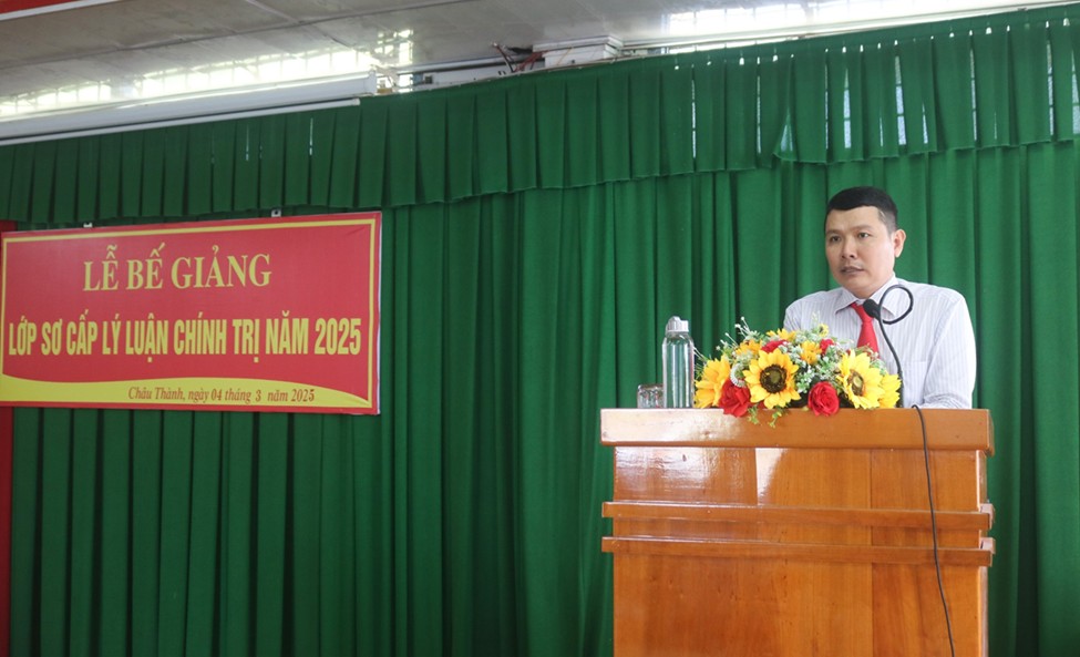Ngày 4-3-2025, Trung tâm Chính trị huyện Châu Thành tổ chức Lễ bế giảng lớp Sơ cấp lý luận chính trị khóa I, năm 2025. Tham dự có đồng chí Hồ Trường Huấn - Ủy viên Ban Thường vụ Huyện ủy, Trưởng Ban Tuyên giáo và Dân vận Huyện ủy, Giám đốc Trung tâm Chính trị huyện; đồng chí Nguyễn Minh Thống - Ủy viên Ban Thường vụ Huyện ủy, Trưởng Ban Tổ chức Huyện ủy; đồng chí Bùi Công Phước - Ủy viên BTV Huyện ủy, Chủ nhiệm Ủy ban kiểm tra Huyện ủy; đồng chí Hồ Hữu Tài - Ủy viên Ban Thường vụ Huyện ủy, Phó Chủ tịch UBND huyện; đồng chí Trung tá Trần Công Tâm - Tiểu đoàn trưởng Tiểu đoàn 3, Trung đoàn Cảnh sát cơ động Tây Nam Bộ.
