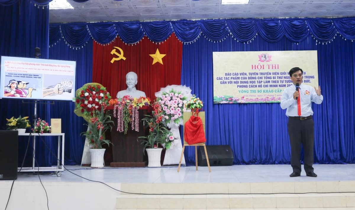 Vòng thi sơ khảo cấp cơ sở cụm xã, thị trấn có 13 thí sinh là báo cáo viên, tuyên truyền viên của Đảng ủy 13 xã, thị trấn. Nội dung thi xoay quanh Chuyên đề năm 2024 “An Giang học tập và làm theo tư tưởng, đạo đức, phong cách Hồ Chí Minh về chăm lo đời sống Nhân dân” gắn với nhiệm vụ chính trị tại địa phương, cơ quan, đơn vị và các tác phẩm “Kiên quyết, kiên trì đấu tranh phòng, chống tham nhũng, tiêu cực, góp phần xây dựng Đảng và Nhà nước ta ngày càng trong sạch vững mạnh” của đồng chí Tổng Bí thư Nguyễn Phú Trọng.