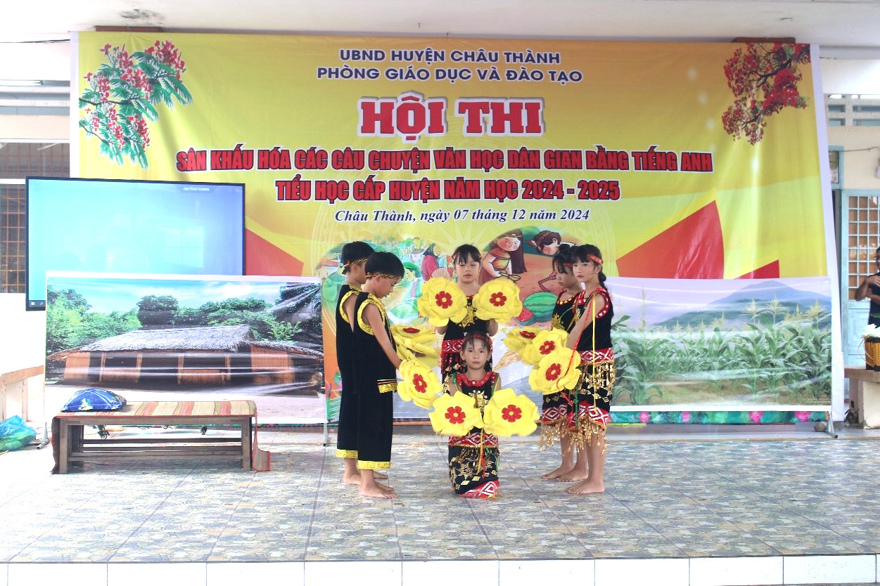Hội thi “Sân khấu hóa các câu chuyện Văn học dân gian bằng tiếng Anh” là một hình thức trải nghiệm nhằm phát huy khả năng sáng tạo của học sinh thông qua việc các em được làm chủ sân khấu, được tập làm diễn viên và tự tin trong giao tiếp bằng tiếng Anh. Đến với Hội thi có 27 đội đến từ các Trường Tiểu học trên địa bàn huyện. Trong thời gian 10 -20 phút, mỗi đội sẽ kể một câu chuyện dân gian của các nhà xuất bản trong và ngoài nước phù hợp với lứa tuổi học sinh. Câu chuyện được kể bằng Tiếng Anh có minh họa là hoạt động giới thiệu lại câu chuyện bằng lời nói, âm thanh, nghệ thuật sân khấu (trang phục, âm nhạc, phông nền...), có người kể và các nhân vật.