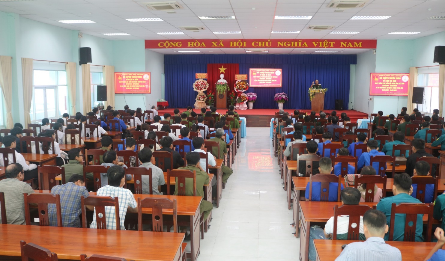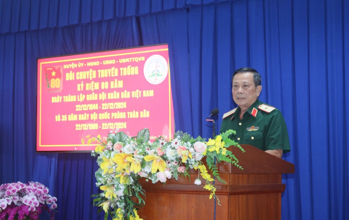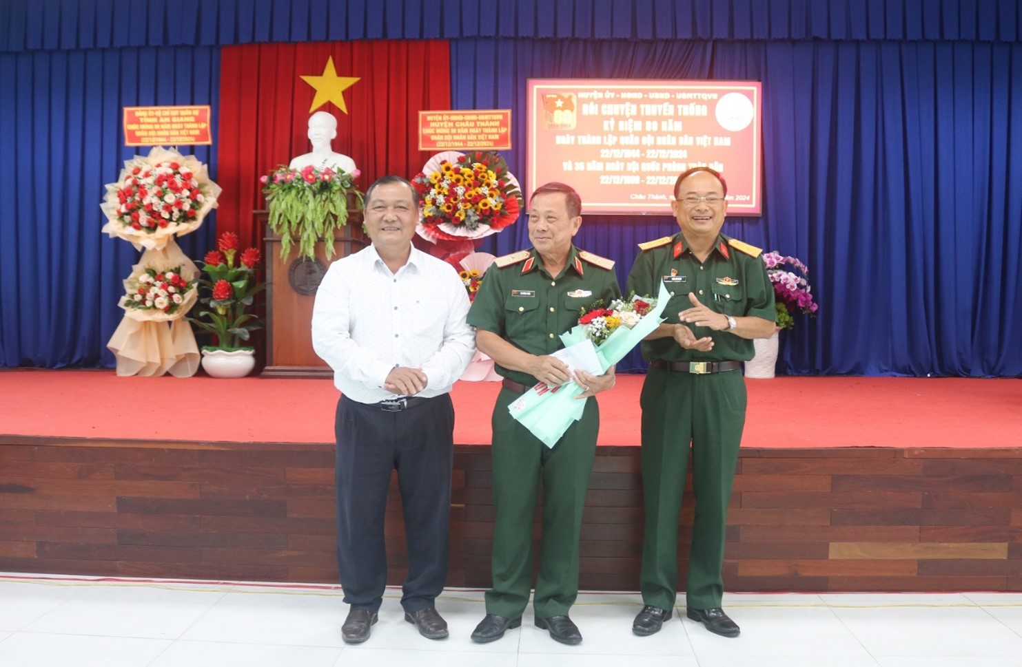 Sáng ngày 18-12-2024, Huyện ủy, HĐND, UBND, Ủy ban MTTQ Việt Nam huyện Châu Thành tổ chức buổi nói chuyện truyền thống Kỷ niệm 80 năm Ngày thành lập Quân đội Nhân dân Việt Nam (22/12/1944 – 22/12/2024) và 35 năm Ngày hội Quốc phòng toàn dân (22/12/1989 - 22/12/2024). Tham dự có đồng chí Thiếu tướng Lê Hoàng Phúc - Nguyên Ủy viên Ban Thường vụ Tỉnh ủy, nguyên Chỉ huy trưởng Bộ Chỉ huy Quân sự tỉnh; đồng chí Lê Bích Phượng - Tỉnh ủy viên, Bí thư Huyện ủy Châu Thành; đồng chí Từ Thanh Khiết - Phó Bí thư Thường trực Huyện ủy, Chủ tịch HĐND huyện; cùng hơn 200 đại biểu là cán bộ, chiến sĩ, đoàn viên, thanh niên, hội viên, học sinh các cơ quan, đơn vị, Trường THPT Nguyễn Bỉnh Khiêm tham dự.