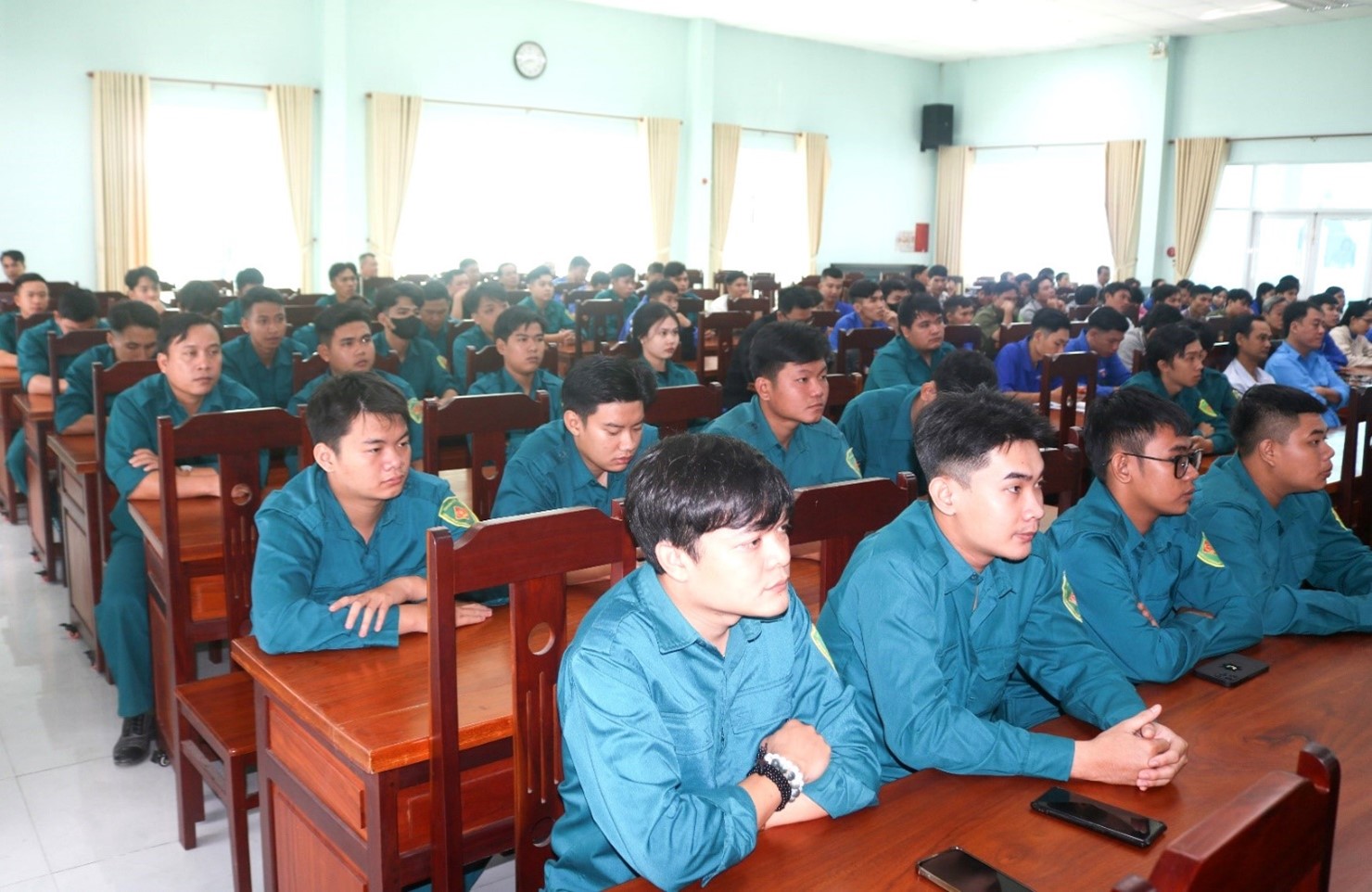 Chiến sĩ dân quân tham dự buổi nói chuyện truyền thống