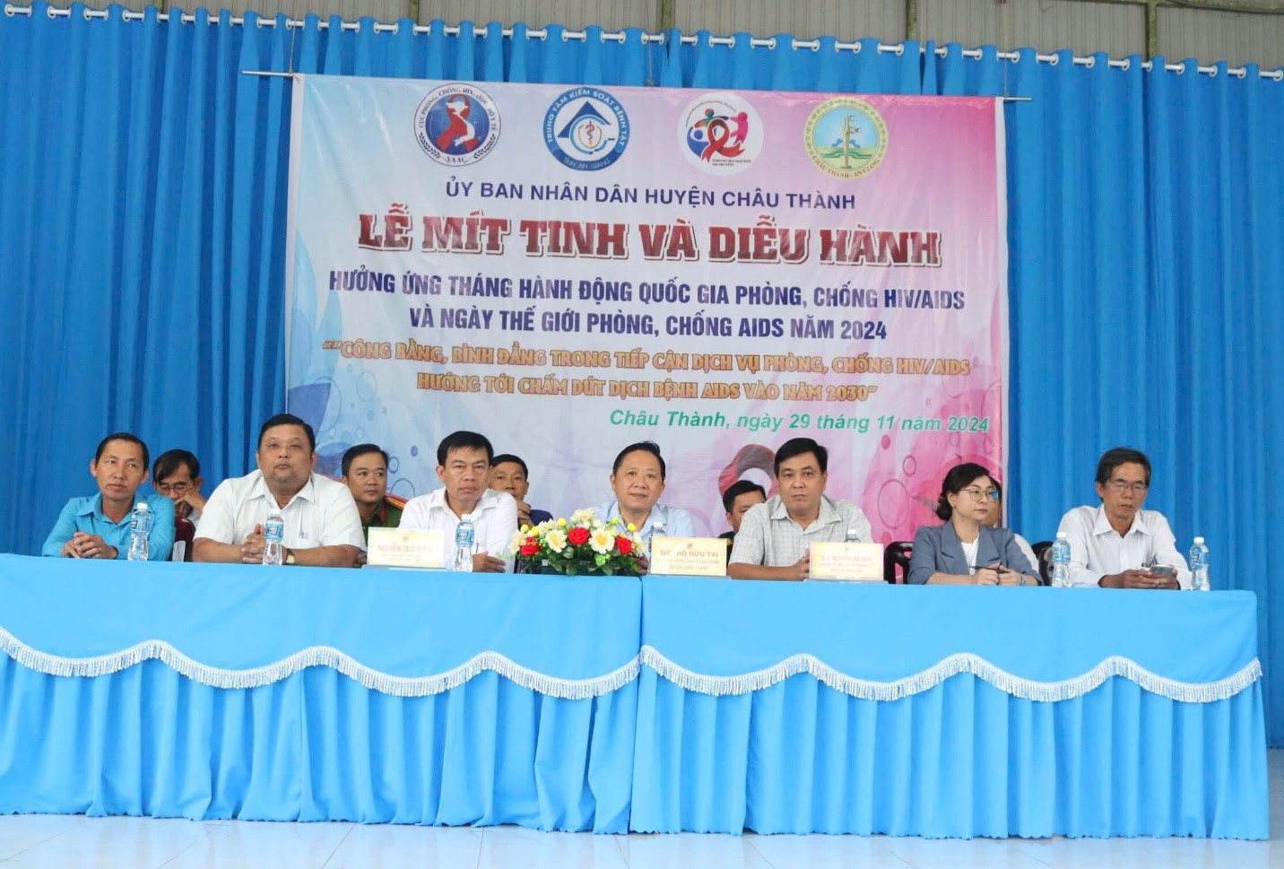 Hưởng ứng Tháng hành động Quốc gia phòng, chống HIV/AIDS năm 2024 với Chủ đề “Công bằng, bình đẳng trong tiếp cận dịch vụ phòng, chống HIV/AIDS - Hướng tới chấm dứt dịch bệnh AIDS vào năm 2030”. Kết thúc dịch AIDS không có nghĩa là không còn người nhiễm HIV, không còn người tử vong do AIDS mà kết thúc dịch AIDS có nghĩa là khi đó AIDS không còn là vấn đề sức khỏe đáng lo ngại ở cộng đồng. Phát biểu tại Lễ mít tinh, ông Hồ Hữu Tài - Ủy viên Ban Thường vụ Huyện ủy, Phó Chủ tịch UBND huyện Châu Thành, Trưởng Ban Chỉ đạo huyện kêu gọi các cấp, các Ngành, các tổ chức Đoàn thể và Nhân dân trên địa bàn huyện bằng những việc làm thiết thực, tích cực, chủ động cùng hành động phòng, chống HIV/AIDS, mang lại hạnh phúc cho mọi người, mọi nhà, phát triển ổn định, bền vững.