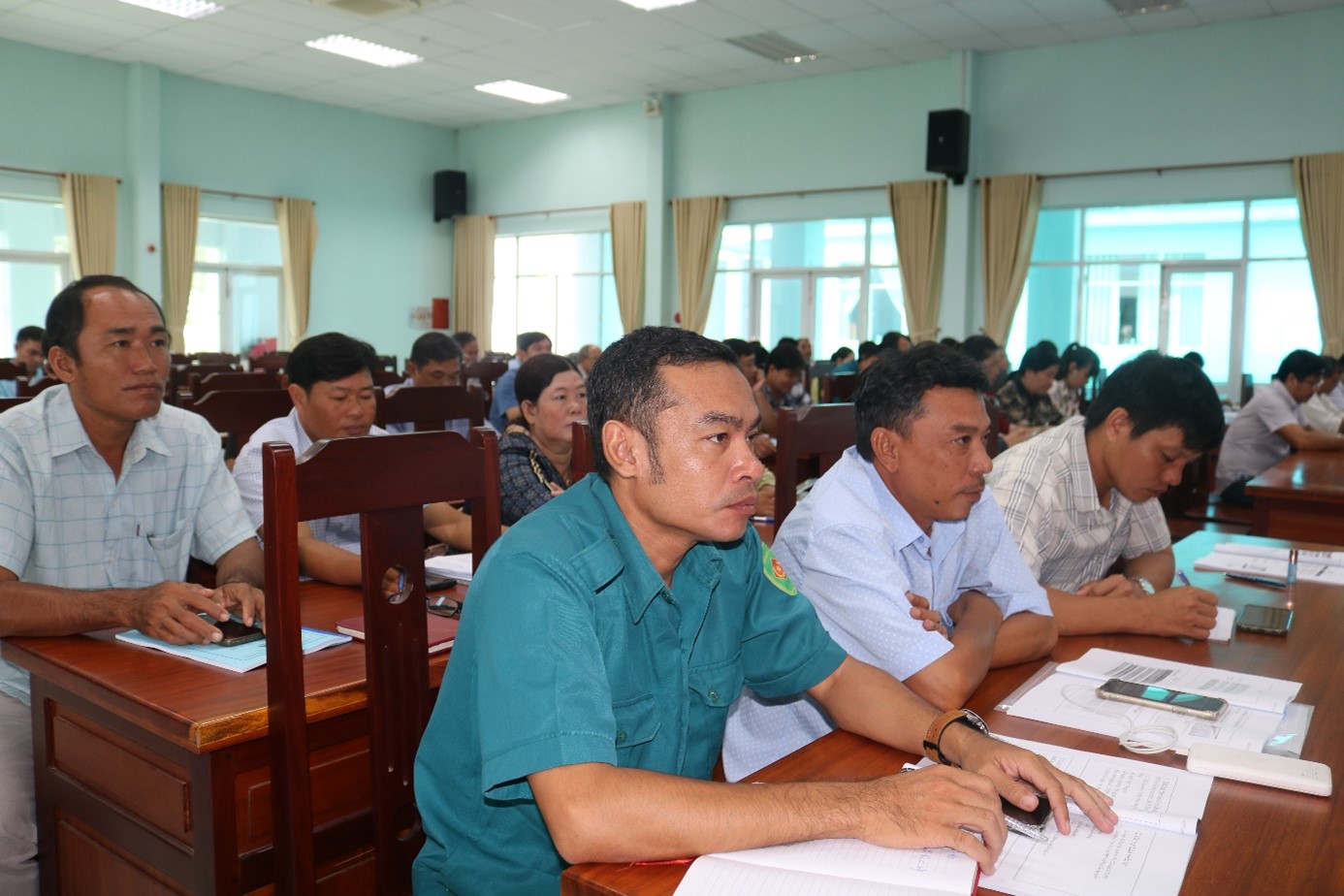 Tham gia lớp tập huấn, học viên được nghe quán triệt các nội dung về: tổng quan tình hình thiên tai – một số loại hình thiên tai thường xảy ra trên địa bàn tỉnh; giới thiệu Luật sửa đổi, bổ sung một số điều của Luật Phòng, chống thiên tai và Luật Đê điều và các văn bản dưới Luật Phòng, chống thiên tai; Nghị định số 66/2021/NĐ-CP quy định chi tiết thi hành một số điều của Luật Phòng, chống thiên tai và Luật sửa đổi, bổ sung một số điều của Luật Phòng, chống thiên tai và Luật Đê điều; Thông tư số 02/2021/TT-BNNPTNT ngày 07/06/2021 về việc hướng dẫn xây dựng kế hoạch phòng chống thiên tai các cấp địa phương; Nghị định số 03/2022/NĐ-CP quy định xử phạt vi phạm hành chính trong lĩnh vực phòng, chống thiên tai, thuỷ lợi, đê điều; Nghị quyết số 102/NQ -CP của Chính phủ về việc đảm bảo công tác chỉ đạo, điều hành phòng, chống thiên tai trong thời gian kiện toàn cơ quan chỉ đạo, chỉ huy phòng thủ dân sự các cấp; Công văn số 877/UBND -KTN của Uỷ ban nhân dân tỉnh An Giang về việc đảm bảo công tác chỉ đại điều hành phòng, chống thiên tai trong thời gian kiện toàn cơ quan chỉ đạo, chỉ huy phòng thủ dân sự các cấp ở địa phương...