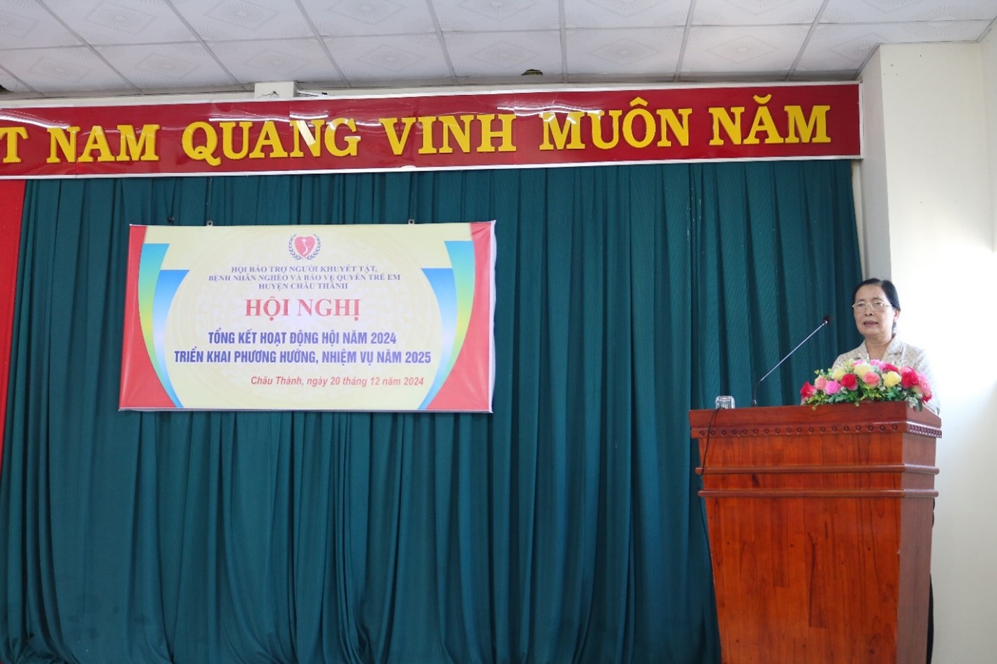 Ngày 20-12-2024, Hội Bảo trợ người khuyết tật, bệnh nhân nghèo huyện Châu Thành tổ chức Hội nghị tổng kết công tác Hội năm 2024 và đề ra phương hướng, nhiệm vụ năm 2025. Ông Phan Văn Tuấn - Phó Chủ tịch Hội bảo trợ Người khuyết tật, Trẻ mồ côi và Bệnh nhân nghèo tỉnh An Giang; bà Nguyễn Thị Nhơn – Chủ tịch Hội Bảo trợ Người khuyết tật, Bệnh nhân nghèo huyện Châu Thành; cùng các đại biểu là lãnh đạo ban, ngành huyện; lãnh đạo các xã, thị trấn, cán bộ phụ trách công tác bảo trợ đến tham dự.
