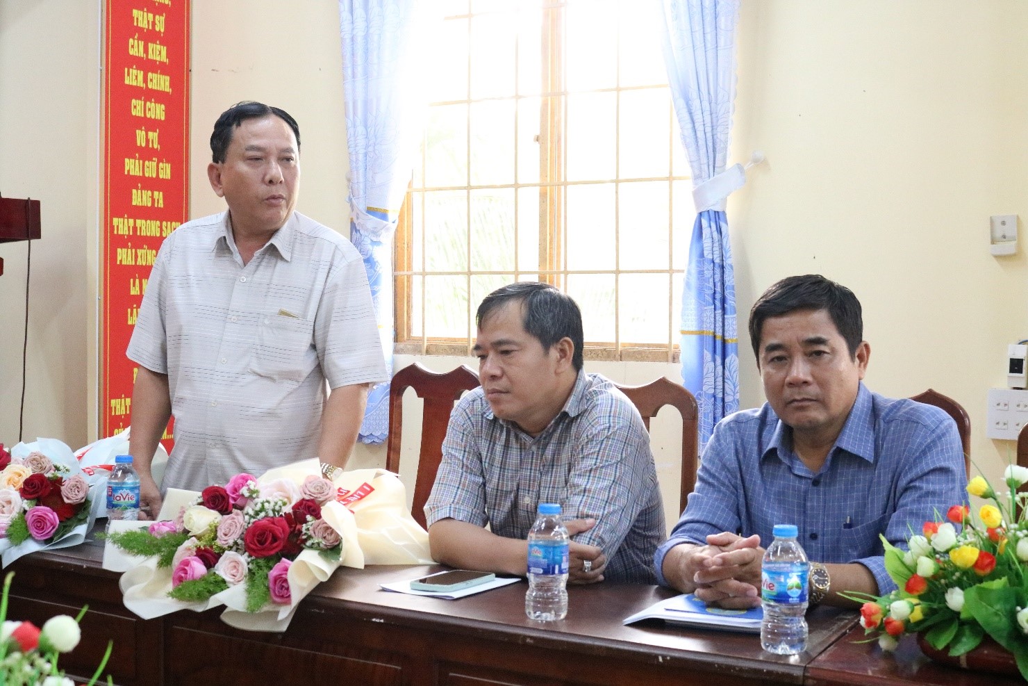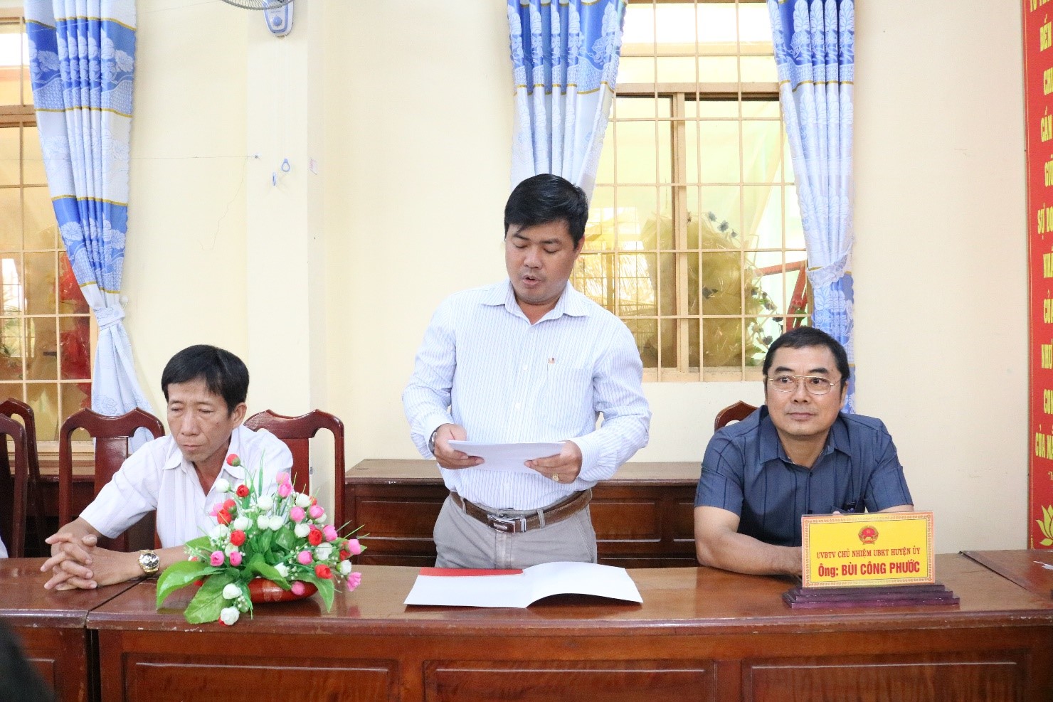 Nhận Quyết định, đồng chí Nguyễn Hữu Tân và đồng chí Nguyễn Duy Hồng cảm ơn Ban Thường vụ Huyện ủy đã luôn hỗ trợ, giúp đỡ để bản thân hoàn thành tốt nhiệm vụ được giao.