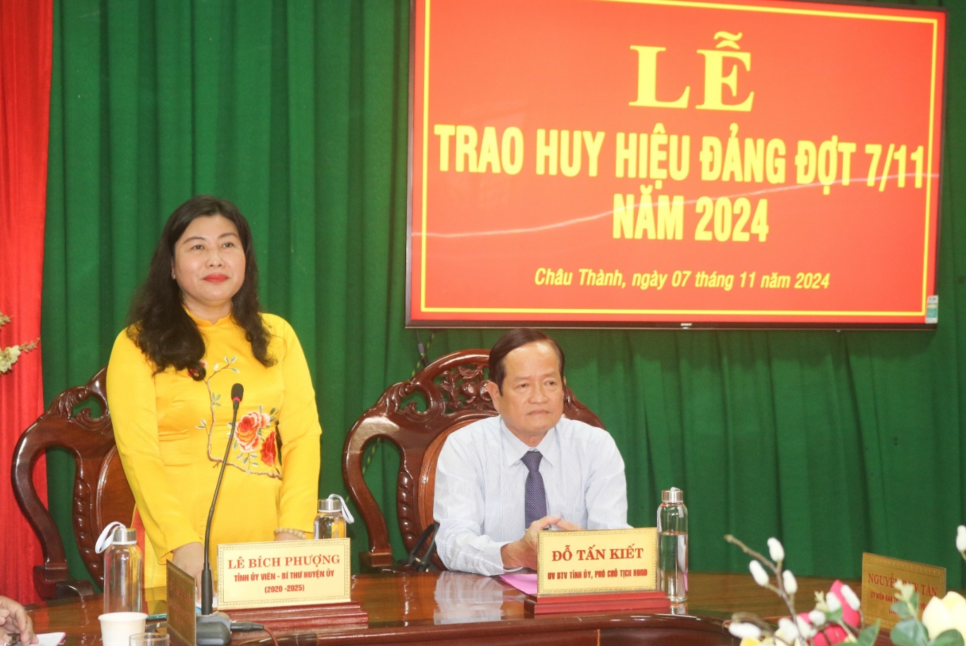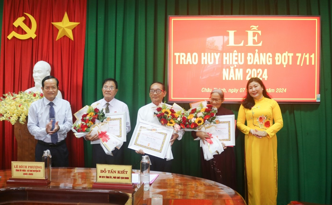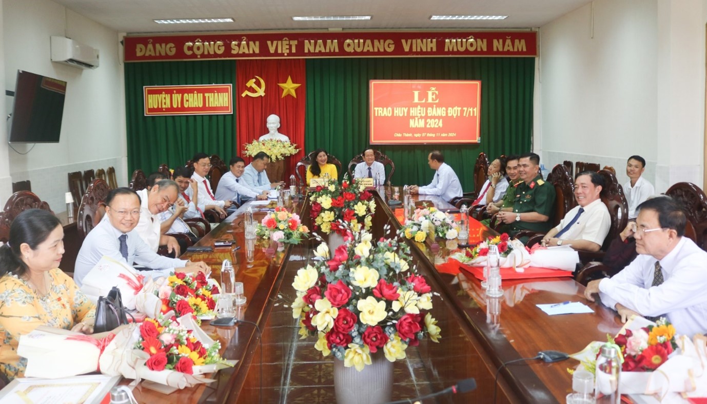 Trong đợt trao Huy hiệu Đảng 7-11, huyện Châu Thành có 13 đảng viên được nhận Huy hiệu Đảng. Trong đó, một đồng chí nhận Huy hiệu 55 năm tuổi Đảng được Huyện ủy tổ chức đến trao tại nhà; Hai đồng chí nhận Huy hiệu 50 năm tuổi Đảng được nhận tại tỉnh; Ba đồng chí nhận Huy hiệu 40 năm tuổi Đảng và bảy đồng chí nhận Huy hiệu 30 năm tuổi Đảng.