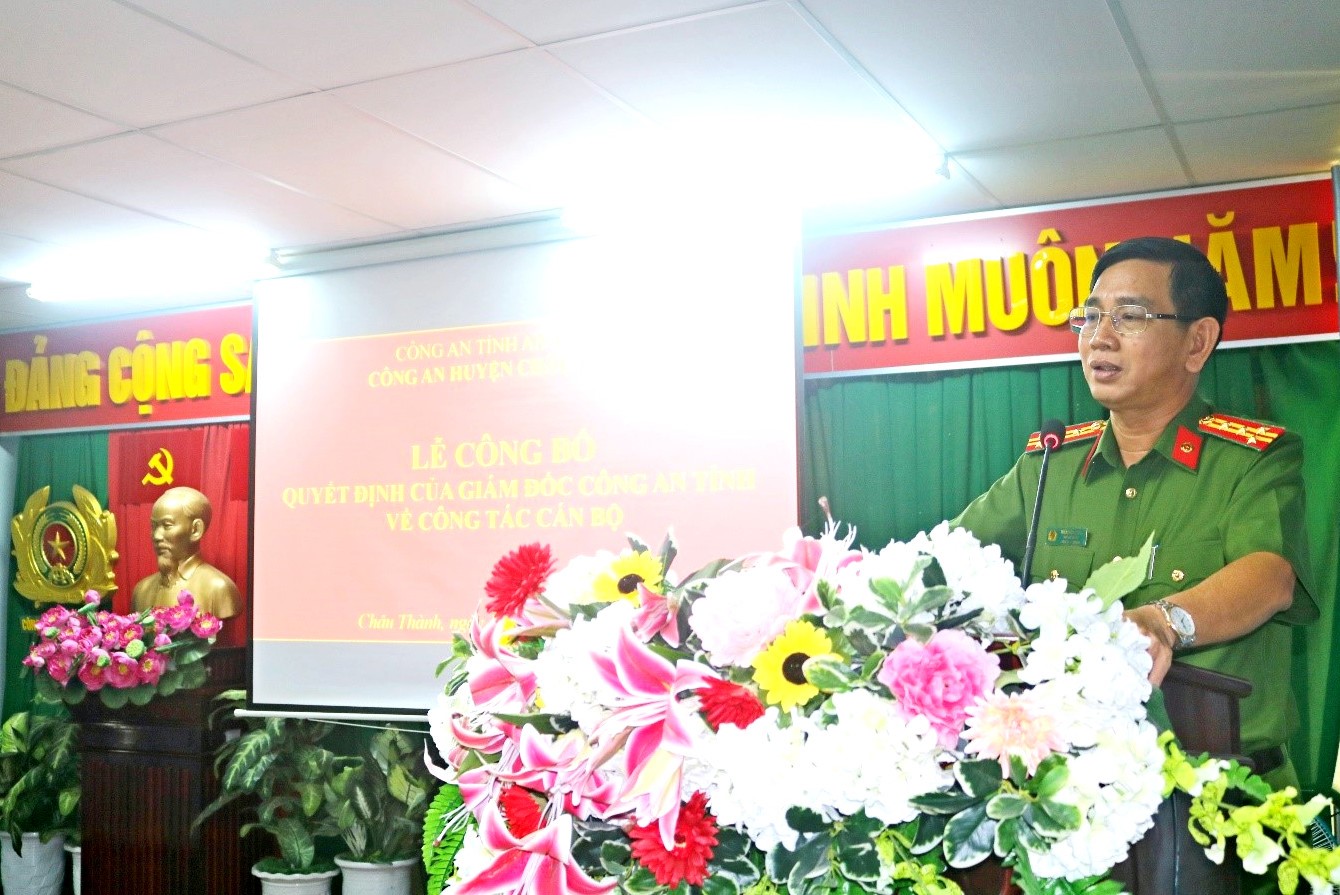 Cũng tại buổi Lễ, Đại tá Trần Văn Cung, Phó Giám đốc Công an tỉnh đã trao Quyết định của Giám đốc Công an tỉnh bổ nhiệm có thời hạn đồng chí Đại úy Phan Hữu Hiệp, Cán bộ Đội Cảnh sát giao thông, trật tự, giữ chức vụ Phó Đội trưởng Đội Cảnh sát giao thông, trật tự - Công an huyện Châu Thành, thuộc Công an tỉnh An Giang.