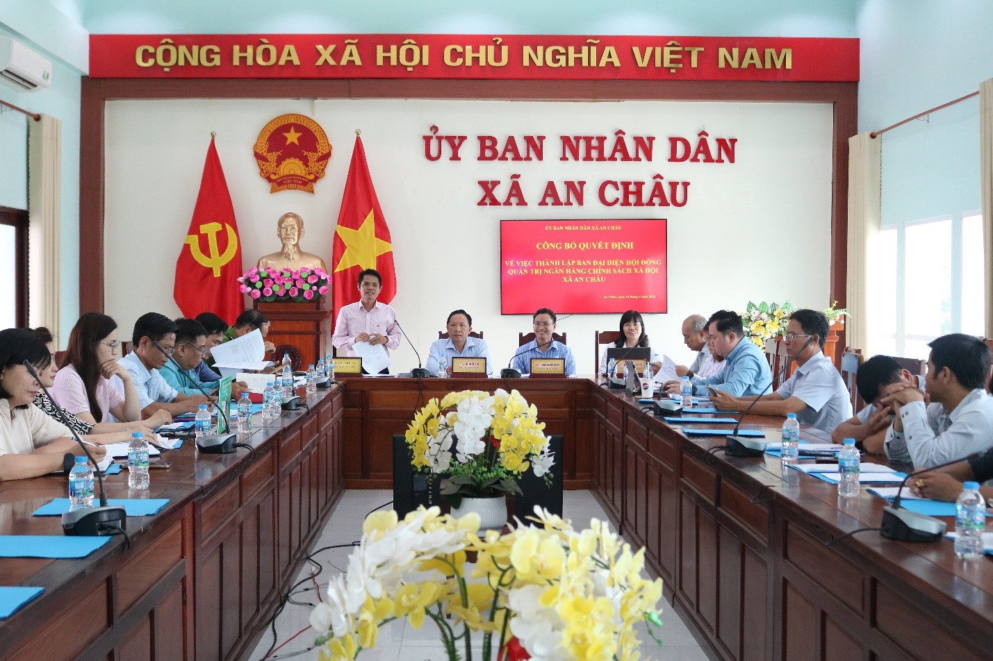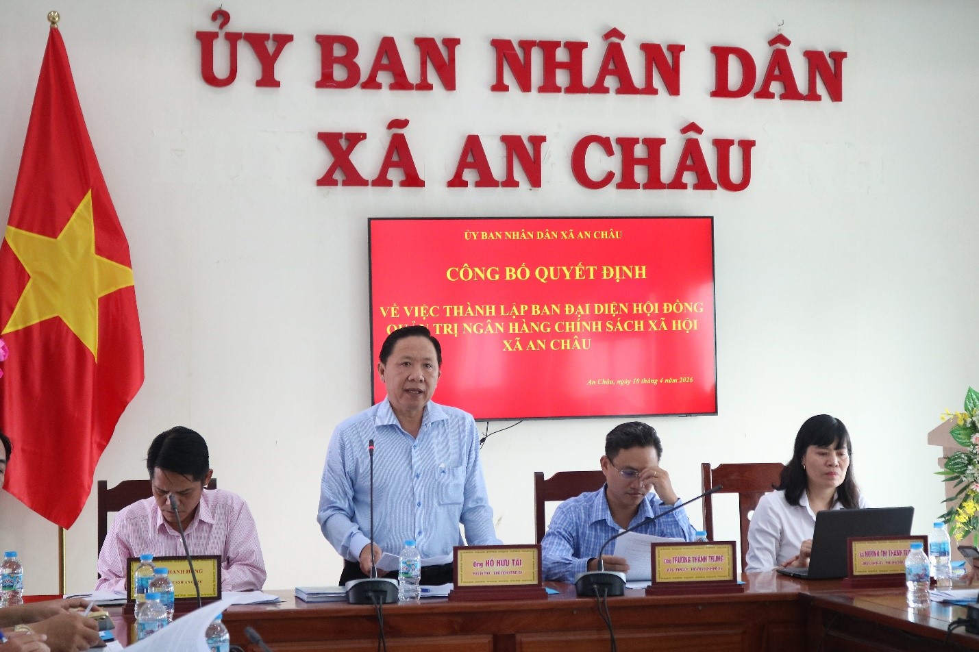 Ngày 10-04-2026, UBND xã An Châu tổ chức Hội nghị Công bố Quyết định thành lập Ban Đại diện Hội đồng quản trị Ngân hàng Chính sách xã hội xã An Châu, tổ chức Phiên họp lần thứ nhất, phân công nhiệm cho các thành viên Ban đại diện và triển khai phướng hướng nhiệm vụ trong quý II năm 2026.