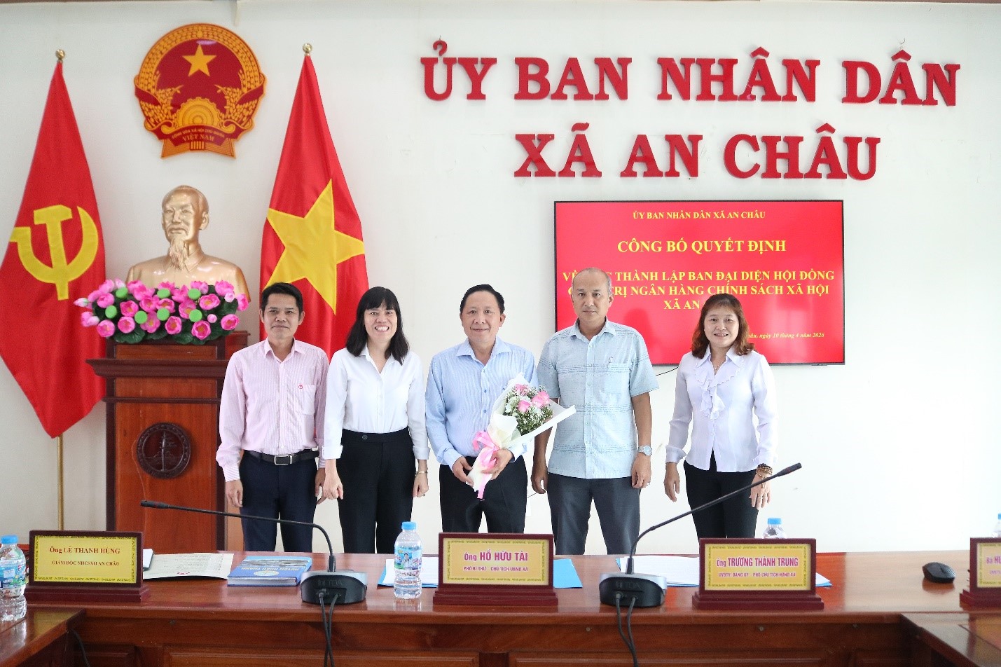 Hồ Hữu Tài – Phó Bí thư Đảng ủy, Chủ tịch UBND xã; ông Trương Thành Trung – UVBTV Đảng ủy, Phó Chủ tịch HĐND xã; bà Huỳnh Thị Thanh Tuyền - UVBTV Đảng ủy, Phó Chủ tịch UBND xã; ông Lê Thành Hùng – Giám đốc Phòng Giao dịch Ngân hàng Chính sách xã hội An Châu; lãnh đạo các phòng chuyên môn, các tổ chức chính trị - xã hội nhận ủy thác.