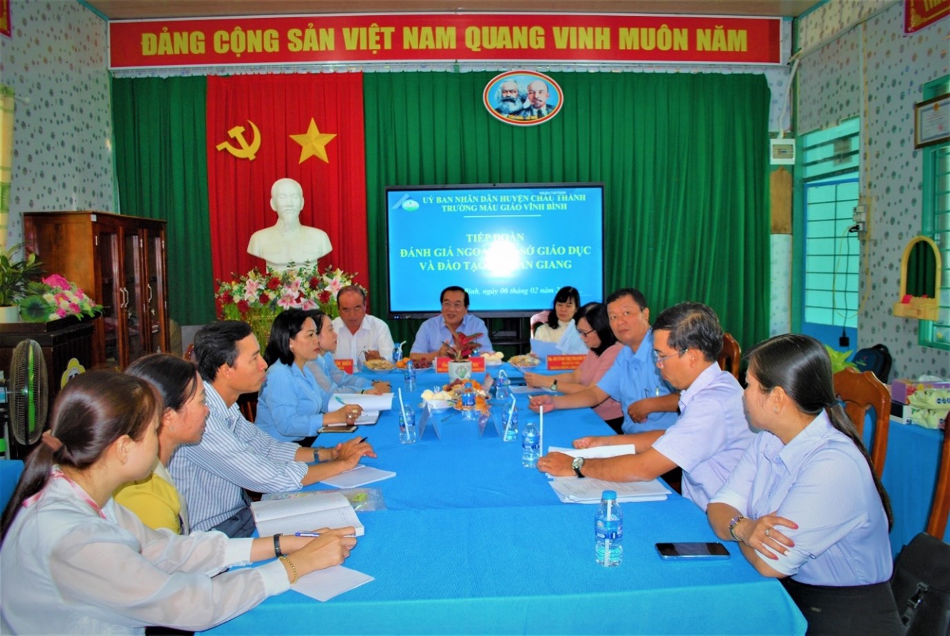 Ngày 06-02-2025, Trường Mẫu giáo Vĩnh Bình tiếp Đoàn đánh giá ngoài của Sở Giáo dục và Đào tạo tỉnh An Giang do ông Võ Bình Thư - Phó Giám đốc Sở Giáo dục và Đào tạo tỉnh An Giang làm Trưởng đoàn. Đây là đợt Đoàn đánh giá ngoài khảo sát chính thức. Tiếp đoàn có bà Huỳnh Thị Thanh Tuyền - Huyện ủy viên, Trưởng Phòng Giáo dục và Đào tạo huyện; ông Huỳnh Phước Hiên - Phó Chủ tịch UBND thị trấn Vĩnh Bình; cùng Ban Giám hiệu Trường Mẫu giáo Vĩnh Bình.