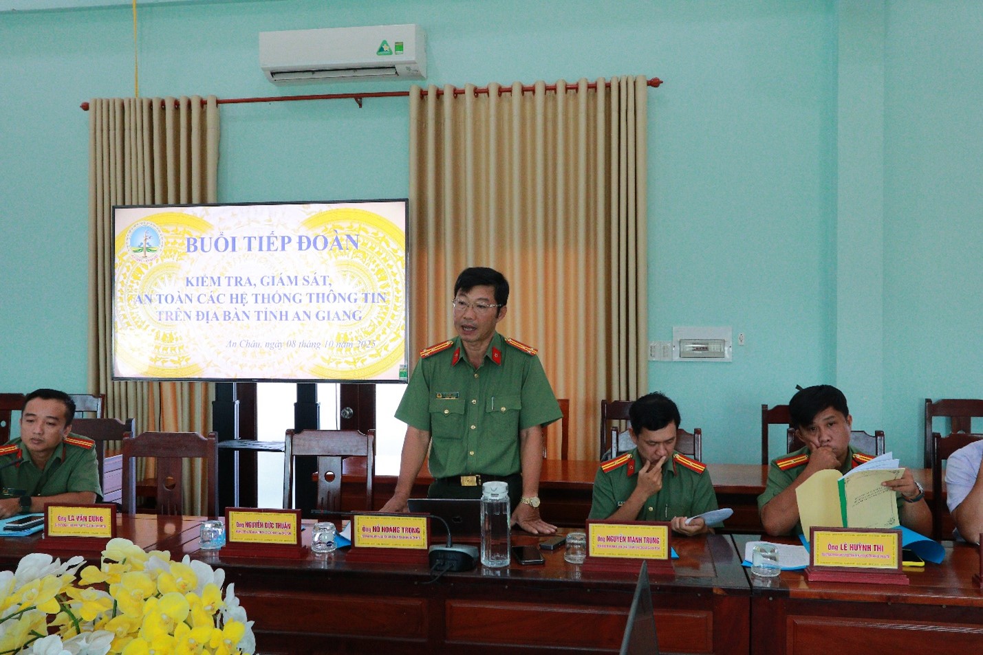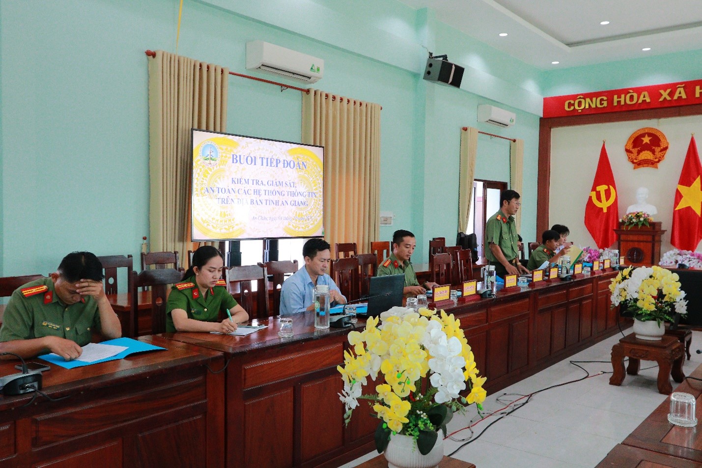 Sáng ngày 08-10-2025, Tiểu ban an toàn, an ninh mạng tỉnh An Giang do Thượng tá Hồ Hoàng Trọng – Phó Trưởng Phòng An ninh mạng và phòng chống tội phạm sử dụng công nghệ cao Công an tỉnh làm Trưởng đoàn kiểm tra đã có buổi làm việc với xã An Châu về công tác đảm bảo an ninh, an toàn các hệ thống thông tin năm 2025. Tiếp đoàn có bà Huỳnh Thị Thanh Tuyền - Phó Chủ tịch UBND xã; cùng lãnh đạo Phòng chuyên môn xã.
