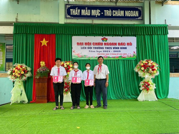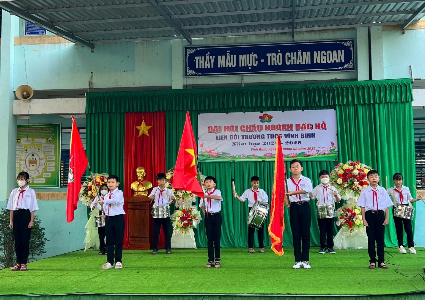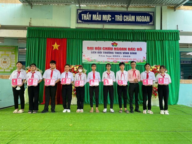 Hòa chung không khí chào mừng Kỷ niệm 135 năm ngày sinh của Chủ tịch Hồ Chí Minh và 84 năm ngày thành lập Đội TNTP HCM; Thực hiện Chương trình công tác Đội và phong trào thiếu nhi năm học 2024-2025; Sáng ngày 15-02-2025, Liên đội Trường THCS Vĩnh Bình long trọng tổ chức Đại hội Cháu ngoan Bác Hồ thành công rực rỡ nhằm tuyên dương Đội viên tiêu biểu năm học 2024-2025.