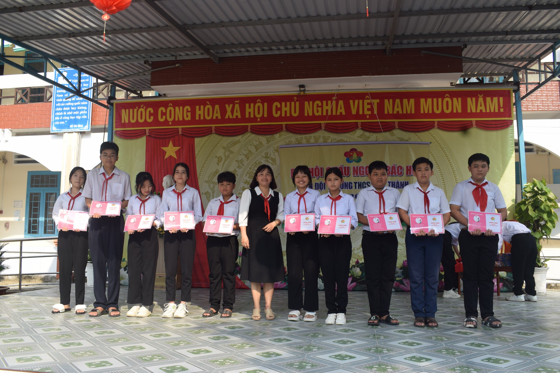 Có 50 em học sinh được tuyên dương dịp này. Các em đều có thành tích xuất sắc trong học tập và rèn luyện, thực hiện tốt 5 điều Bác Hồ dạy, tích cực tham gia các phong trào Đội.