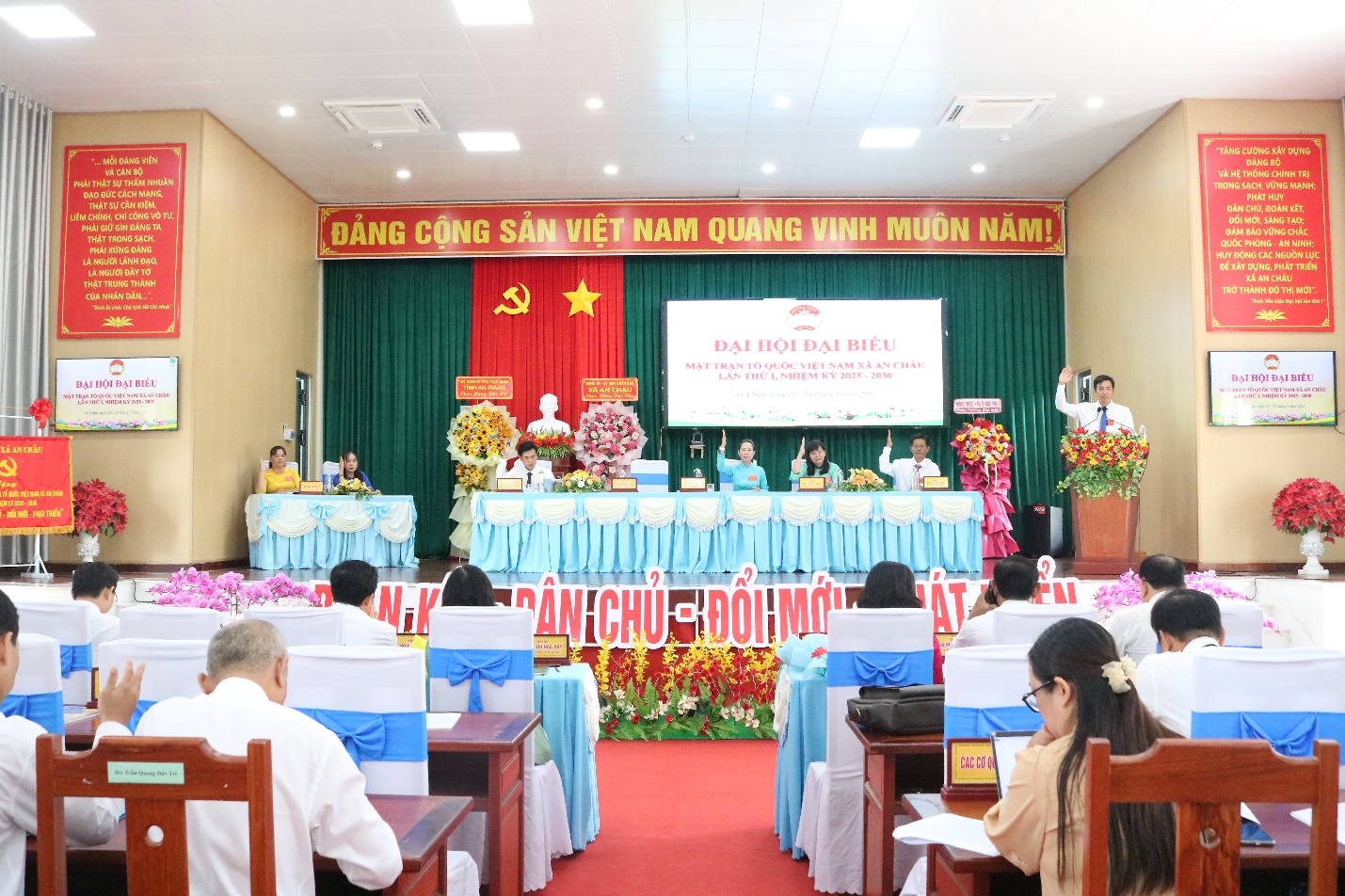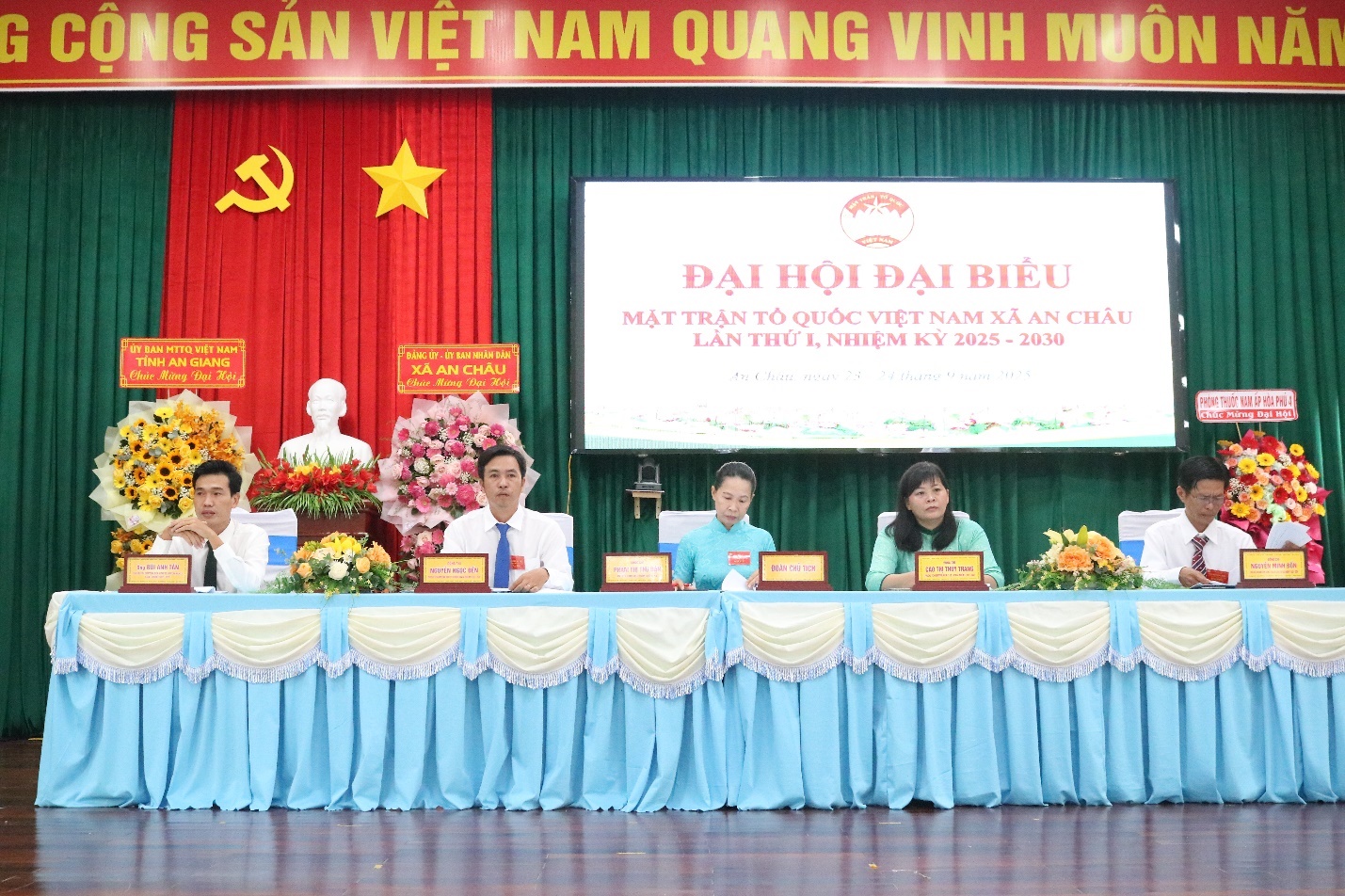 Đại hội dân chủ hiệp thương cử Ủy ban MTTQ xã An Châu khóa I, nhiệm kỳ 2025- 2030 gồm 69 ủy viên. Tại hội nghị thứ nhất, Ủy ban MTTQ xã An Châu khóa 1 cử ra Ban thường trực gồm 5 vị; bà Phạm Thị Thu Dân - giữ chức Chủ tịch UBMTTQVN xã nhiệm kỳ 2025-2030 và cử Đoàn đại biểu đi dự Đại hội đại biểu MTTQ Việt Nam tỉnh An Giang lần thứ I, nhiệm kỳ 2025-2030 là 02 đại biểu chính thức và 01 đại biểu dự khuyết.