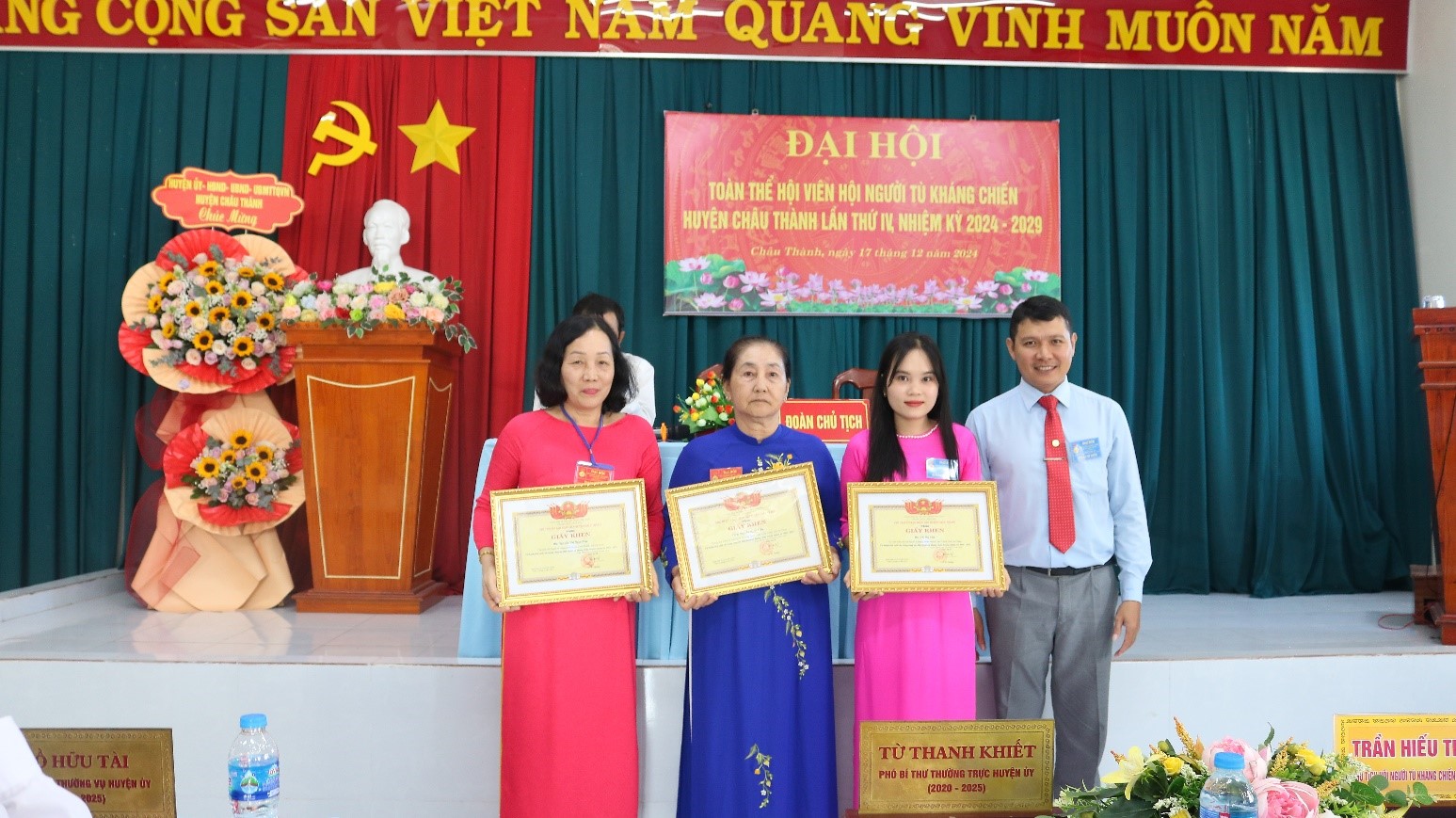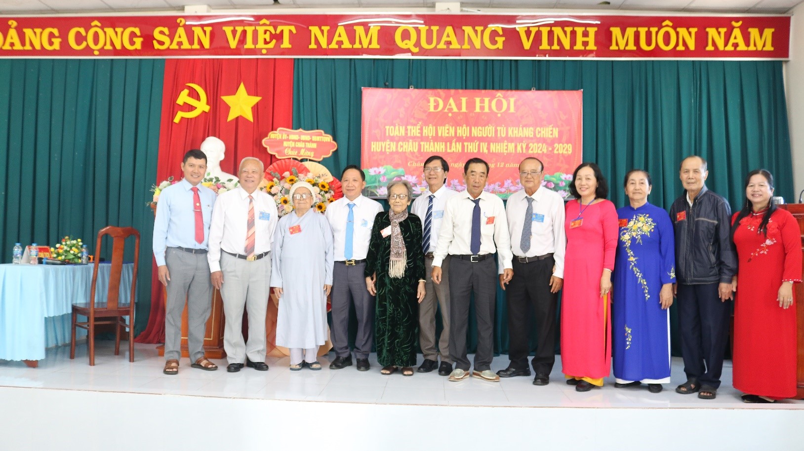 Sáng ngày 17-12-2024, Hội Người tù kháng chiến huyện Châu Thành tổ chức Đại hội toàn thể hội viên Hội Người tù kháng chiến huyện Châu Thành lần thứ IV, nhiệm kỳ 2024-2029. Ông Trần Hiếu Trung – Chủ tịch Hội Người tù kháng chiến tỉnh An Giang; ông Từ Thanh Khiết – Phó Bí thư thường trực Huyện ủy, Chủ tịch Hội đồng nhân dân huyện Châu Thành; ông Hồ Hữu Tài - Ủy viên Ban Thường vụ Huyện ủy, Phó Chủ tịch Ủy ban nhân dân huyện Châu Thành; ông Hồ Trường Huấn – Ủy viên Ban Thường vụ Huyện ủy, Trưởng Ban Tuyên giáo – Giám đốc Trung tâm Chính trị huyện Châu Thành cùng lãnh đạo các ban, ngành và 15 đại biểu chính thức về tham dự.