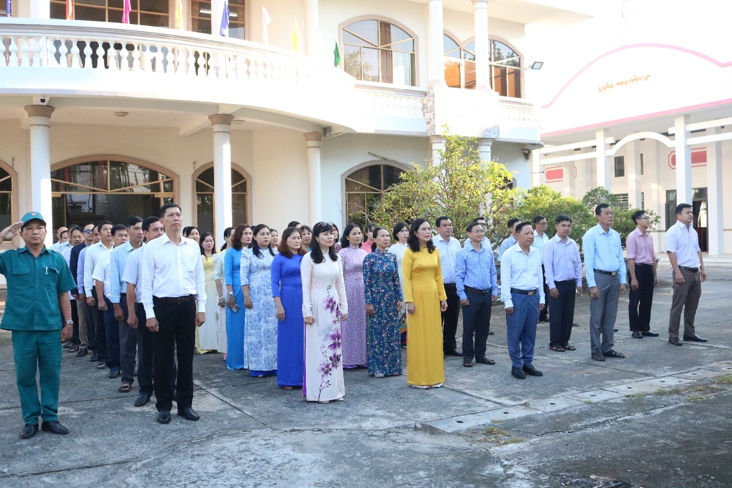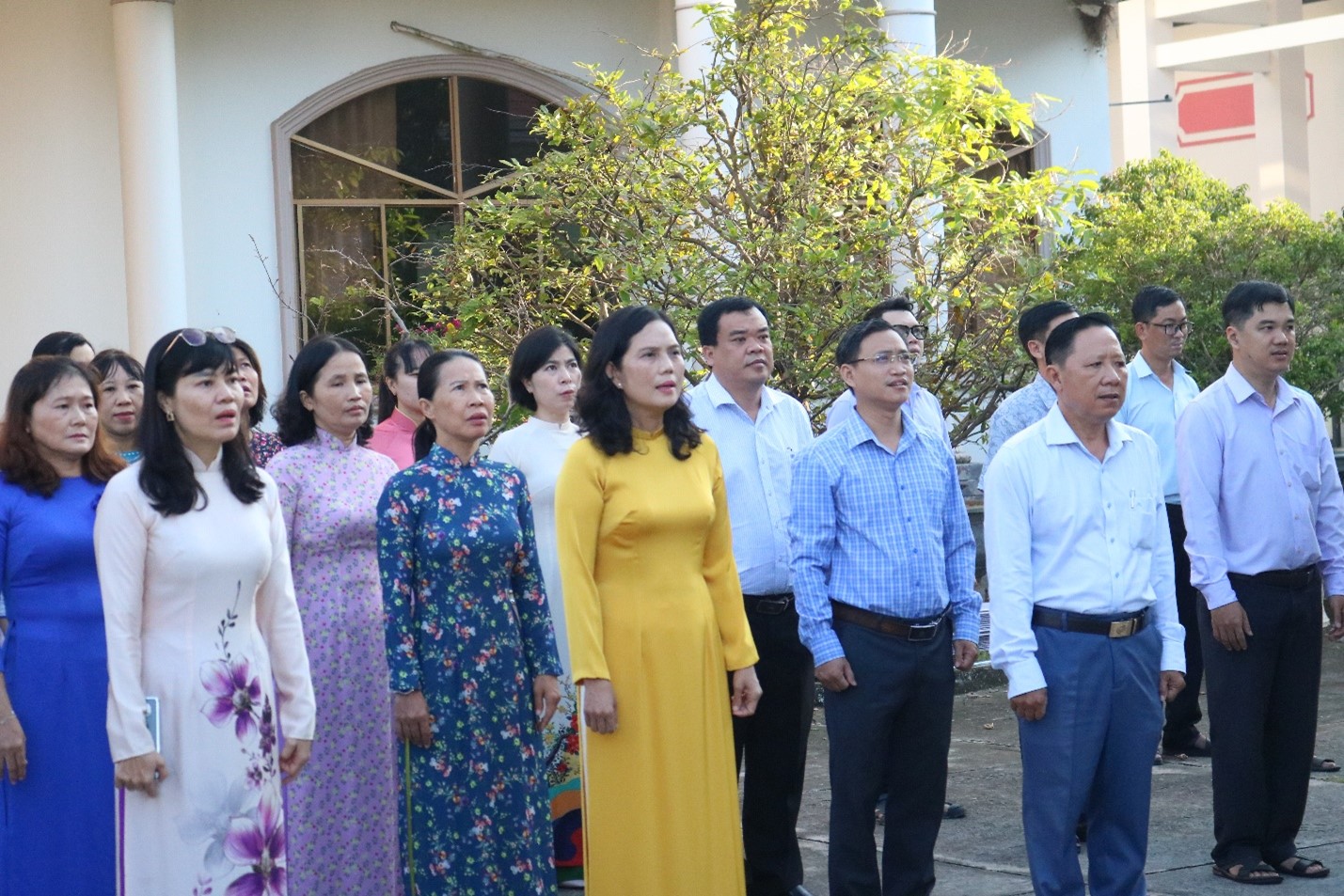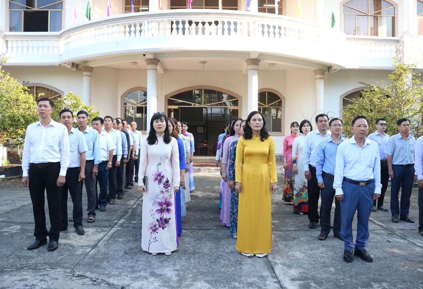 Lễ Chào cờ được diễn ra trong không khí trang nghiêm. Lãnh đạo Đảng ủy, HĐND, UBND, UBMTTQVN, cán bộ, đảng viên cùng hát vang bài Quốc ca.