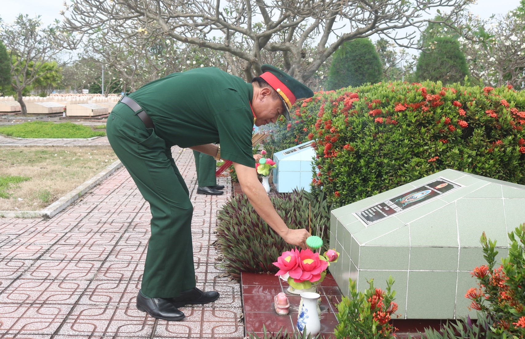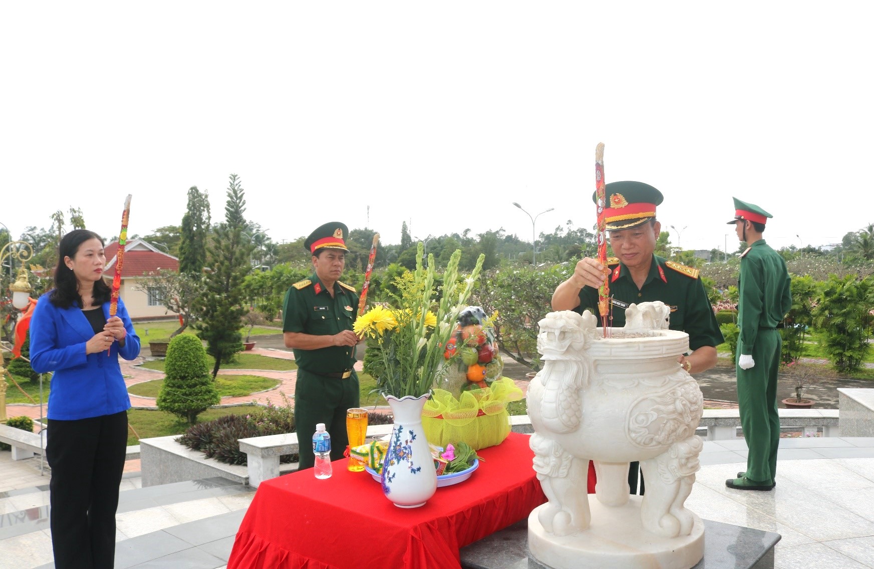 Trong không khí trang nghiêm, thành kính, các đồng chí trong Đoàn công tác đã dâng hương, dâng hoa, kính cẩn nghiêng mình, dành một phút mặc niệm tưởng nhớ công lao to lớn của các Anh hùng liệt sĩ và thắp hương lên từng phần mộ của các Anh hùng liệt sĩ, bày tỏ sự tri ân sâu sắc đối với các thế hệ đi trước đã dâng trọn đời mình cho độc lập, tự do dân tộc, hạnh phúc của Nhân dân.