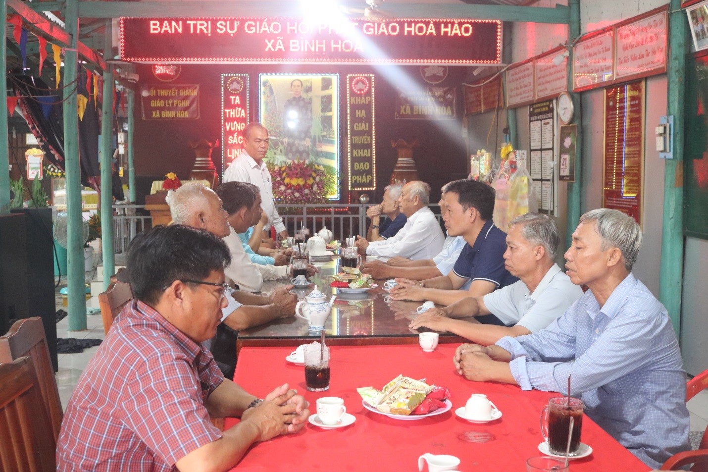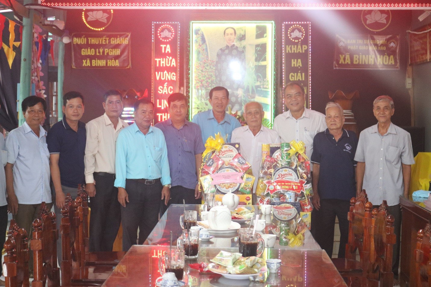 Sáng ngày 21/6/2024, Đoàn công tác Huyện ủy - HĐND - UBND - Ủy ban MTTQ Việt Nam huyện Châu Thành do ông Đoàn Hồng Danh - Ủy viên Ban Thường vụ Huyện ủy - Trưởng Ban Dân vận Huyện ủy làm trưởng đoàn đến thăm, tặng quà và chúc mừng Ban Trị sự Phật giáo Hòa Hảo xã Bình Hòa nhân dịp Đại lễ kỷ niệm 85 năm Ngày Đức Huỳnh Giáo chủ khai sáng đạo Phật giáo Hòa Hảo (18/5 năm Kỷ Mão 1939 - 18/5 năm Giáp Thìn 2024).