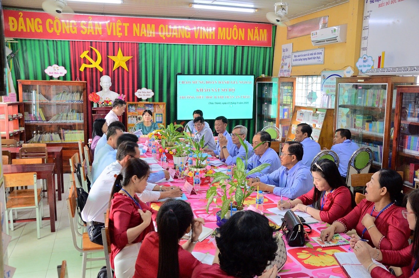 Ngày 05-03-2025, Đoàn đánh giá ngoài của Sở Giáo dục và Đào tạo An Giang do bà Trần Thị Ngọc Diễm - Tỉnh ủy viên, Giám đốc Sở Giáo dục và Đào tạo An Giang làm Trưởng đoàn, đã có buổi khảo sát sơ bộ tại Trường Tiểu học B thị trấn An Châu.