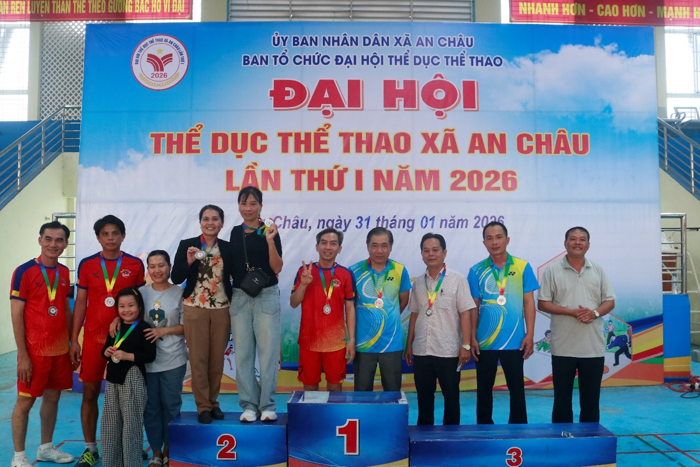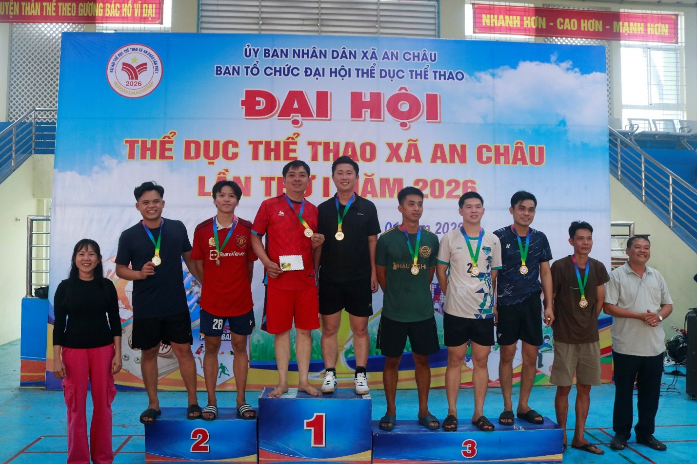 Nằm trong khuôn khổ các môn thi đấu tại Đại hội thể dục thể thao xã An Châu lần thứ I. Ngày 31-01-2026, tại Nhà thi đấu đa năng An Châu, Trung tâm Dịch vụ tổng hợp xã tổ chức giải Bóng chuyền nam. Ông Lê Thanh Sơn – Giám đốc Trung tâm Dịch vụ tổng hợp xã; bà Đào Thị Tuyết Nhung – Phó Giám đốc Trung tâm Dịch vụ Tổng hợp xã đã đến dự khán và trao giải.