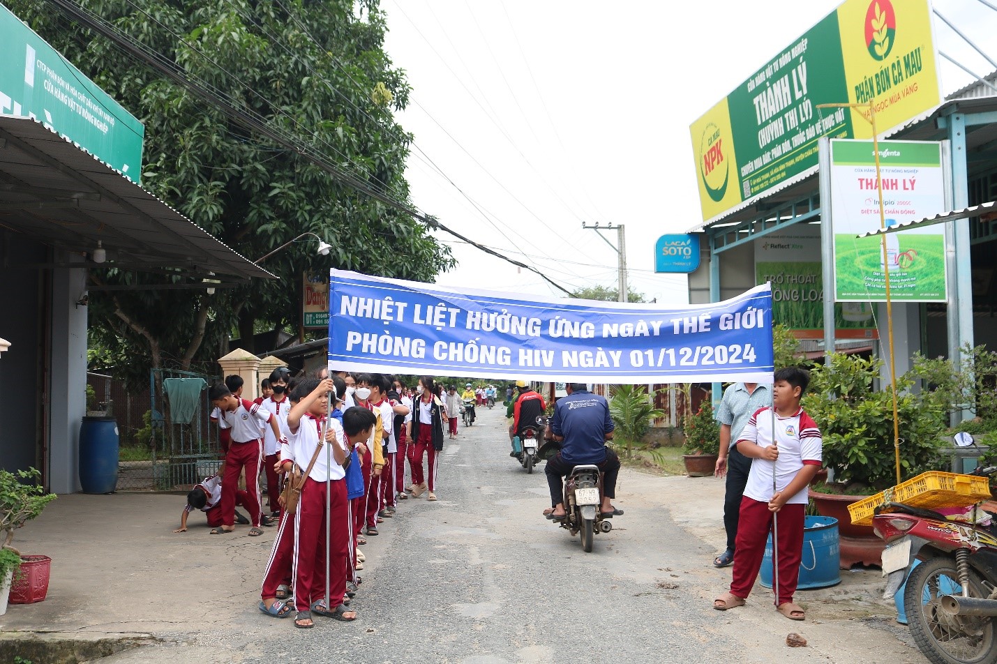 Ngay sau Lễ mít-tting, cán bộ, công chức, Ban ngành, Đoàn thể và học sinh tham gia diễu hành với khẩu hiệu “Nhiệt liệt hưởng ứng ngày thế giới phòng, chống HIV/AIDS”.