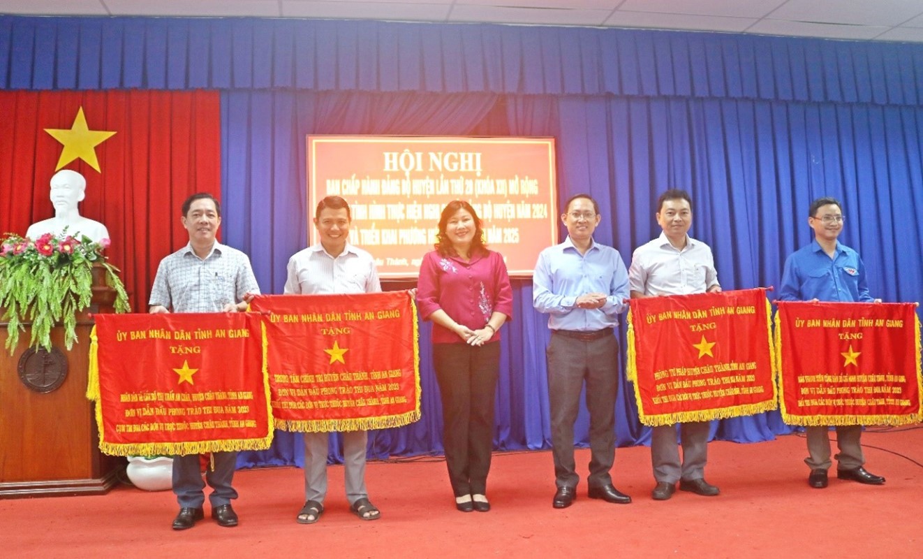 Dịp này, Huyện ủy Châu Thành đã trao cờ thi đua của UBND tỉnh cho 4 đơn vị xuất sắc trong Khối thi đua thuộc huyện Châu Thành năm 2023.