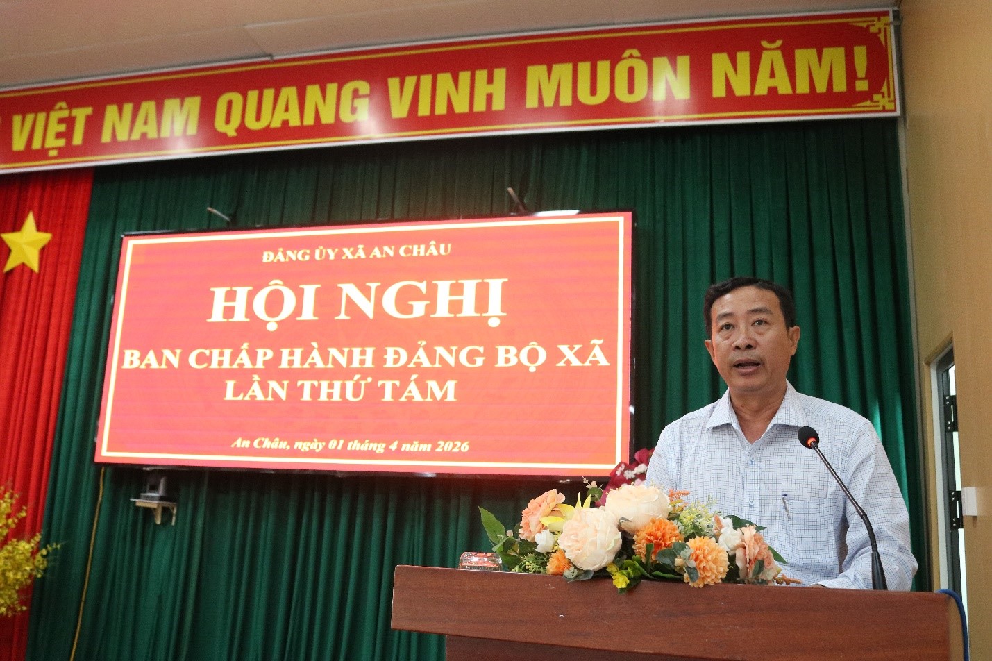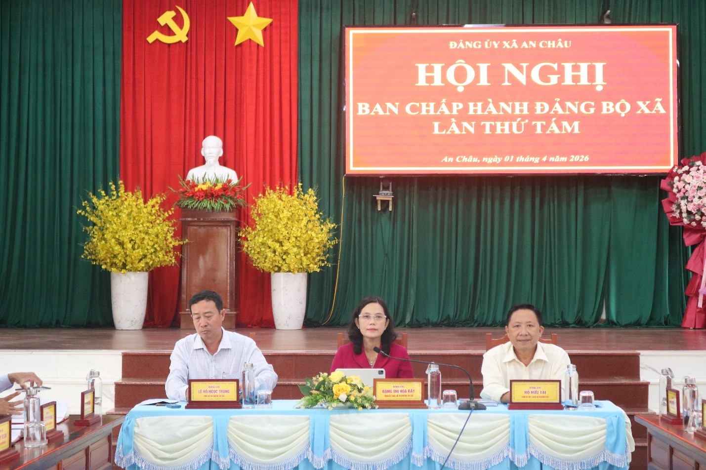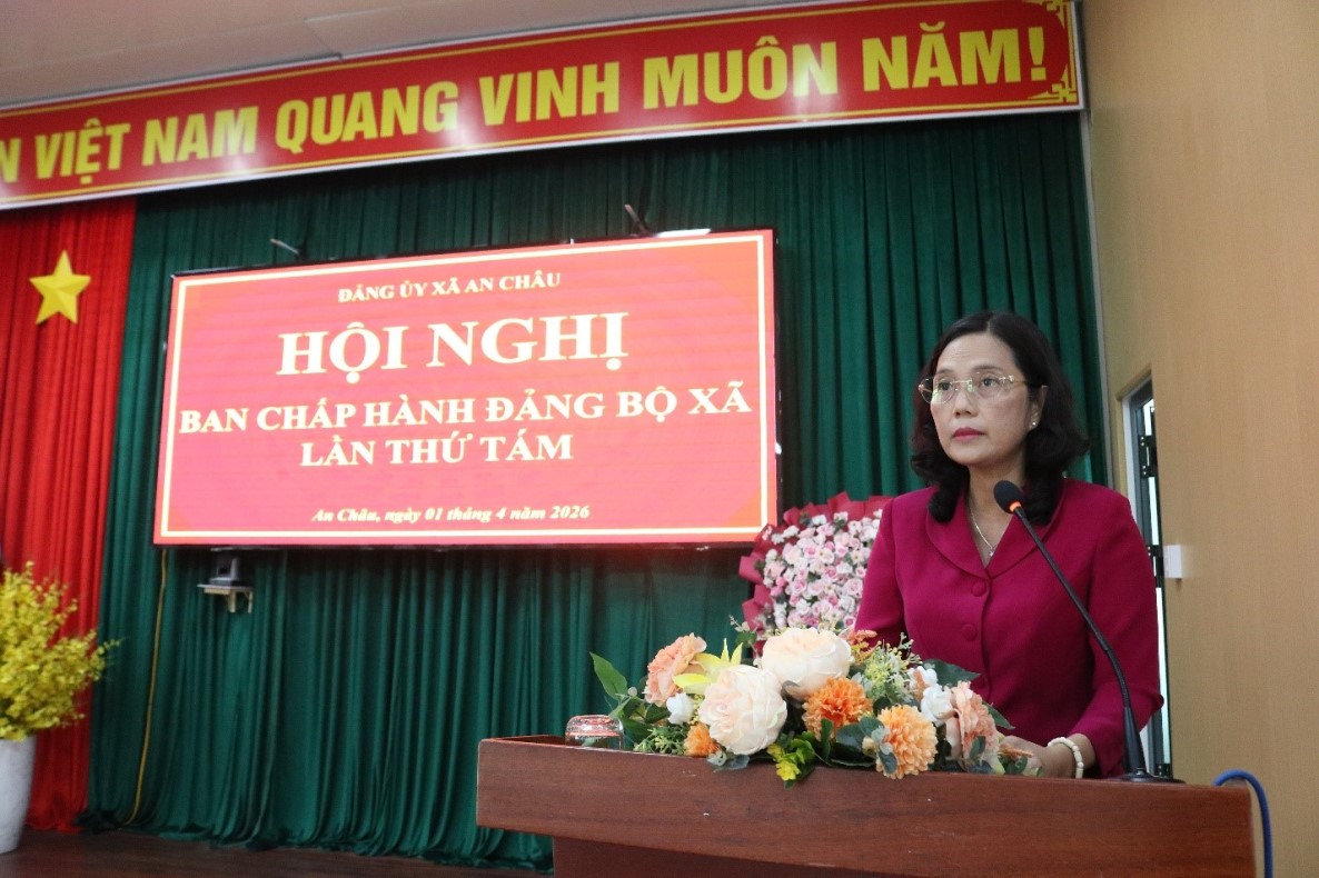 Sáng ngày 01-04-2026, Đảng ủy xã An Châu tổ chức Hội nghị Ban Chấp hành Đảng bộ xã lần thứ 8 nhằm đánh gia tình thực hiện Nghị quyết quý 1 và đề ra phương, hướng nhiệm vụ quý II. Đồng chí Đặng Thị Hoa Rây - Tỉnh ủy viên, Bí thư Đảng ủy, Chủ tịch HĐND xã chủ trì hội nghị; đồng chí Lê Hồ Ngọc Trung – Phó Bí thư Thường trực Đảng ủy xã; đồng chí Hồ Hữu Tài – Phó Bí thư Đảng ủy, Chủ tịch UBND xã; cùng các đồng chí UVBTV, BCH Đảng bộ xã, lãnh đạo phòng, ban chuyên môn, chi bộ trực thuộc tham dự.