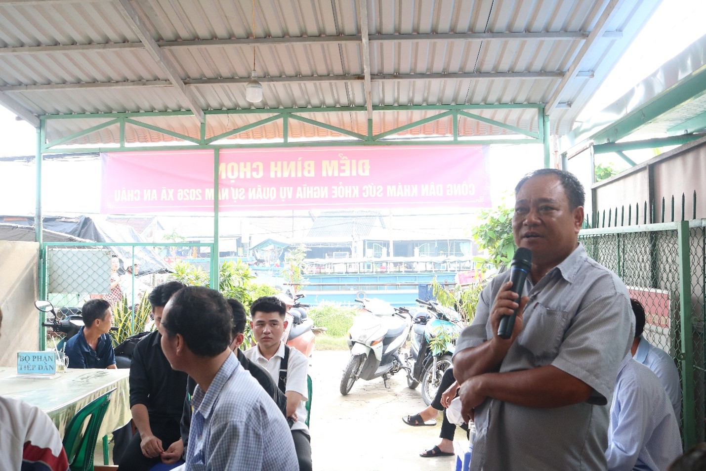 Sáng ngày 11-11-2025, tại ấp Hòa Long 1, Hòa Long 2, Hội đồng nghĩa vụ quân sự xã An Châu tổ chức hội nghị bình chọn công dân khám sức khỏe nghĩa vụ quân sự năm 2026. Đồng chí Hồ Hữu Tài – Phó Bí thư Đảng ủy, Chủ tịch UBND, Chủ tịch Hội đồng nghĩa vụ quân sự xã đã đến dự.