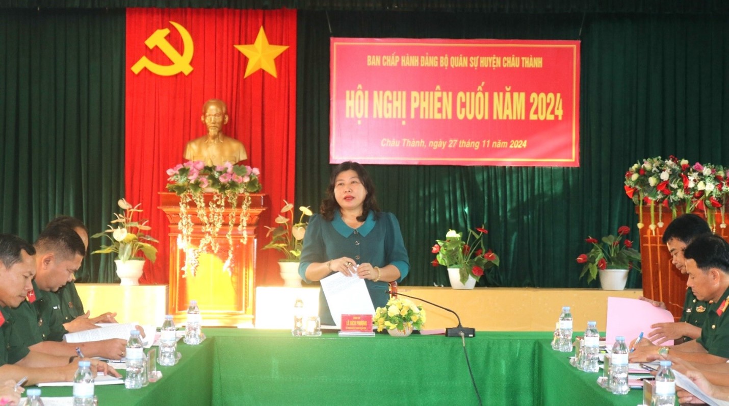 Ngày 27-11-2024, Đảng ủy Quân sự huyện Châu Thành tổ chức Hội nghị phiên cuối năm 2024, ra Nghị quyết lãnh đạo thực hiện nhiệm vụ năm 2025. Đồng chí Lê Bích Phượng - Tỉnh ủy viên, Bí thư Huyện ủy, Bí thư Đảng ủy Quân sự huyện chủ trì Hội nghị. Tham dự có đại diện các cơ quan chuyên môn Bộ Chỉ huy Quân sự tỉnh.