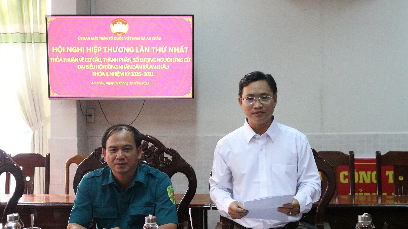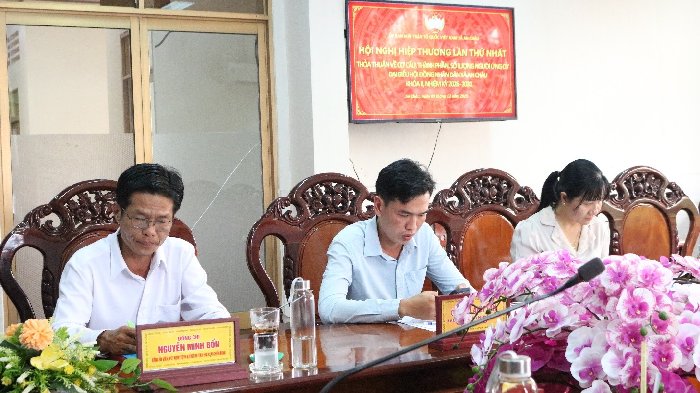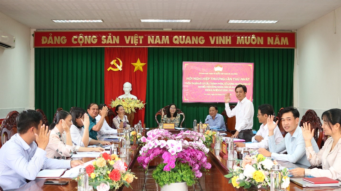 Chiều ngày 09-12-2025, Ban Thường trực Ủy ban Mặt trận Tổ quốc Việt Nam xã tiến hành Hội nghị hiệp thương lần thứ nhất để thỏa thuận cơ cấu, thành phần và số lượng người được giới thiệu ứng cử đại biểu Hội đồng nhân dân xã An Châu nhiệm kỳ 2026-2031.