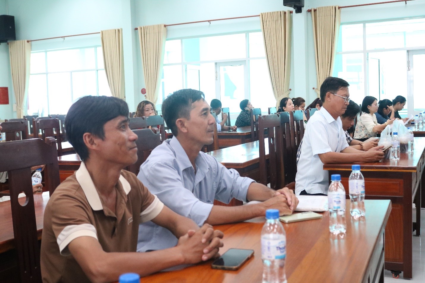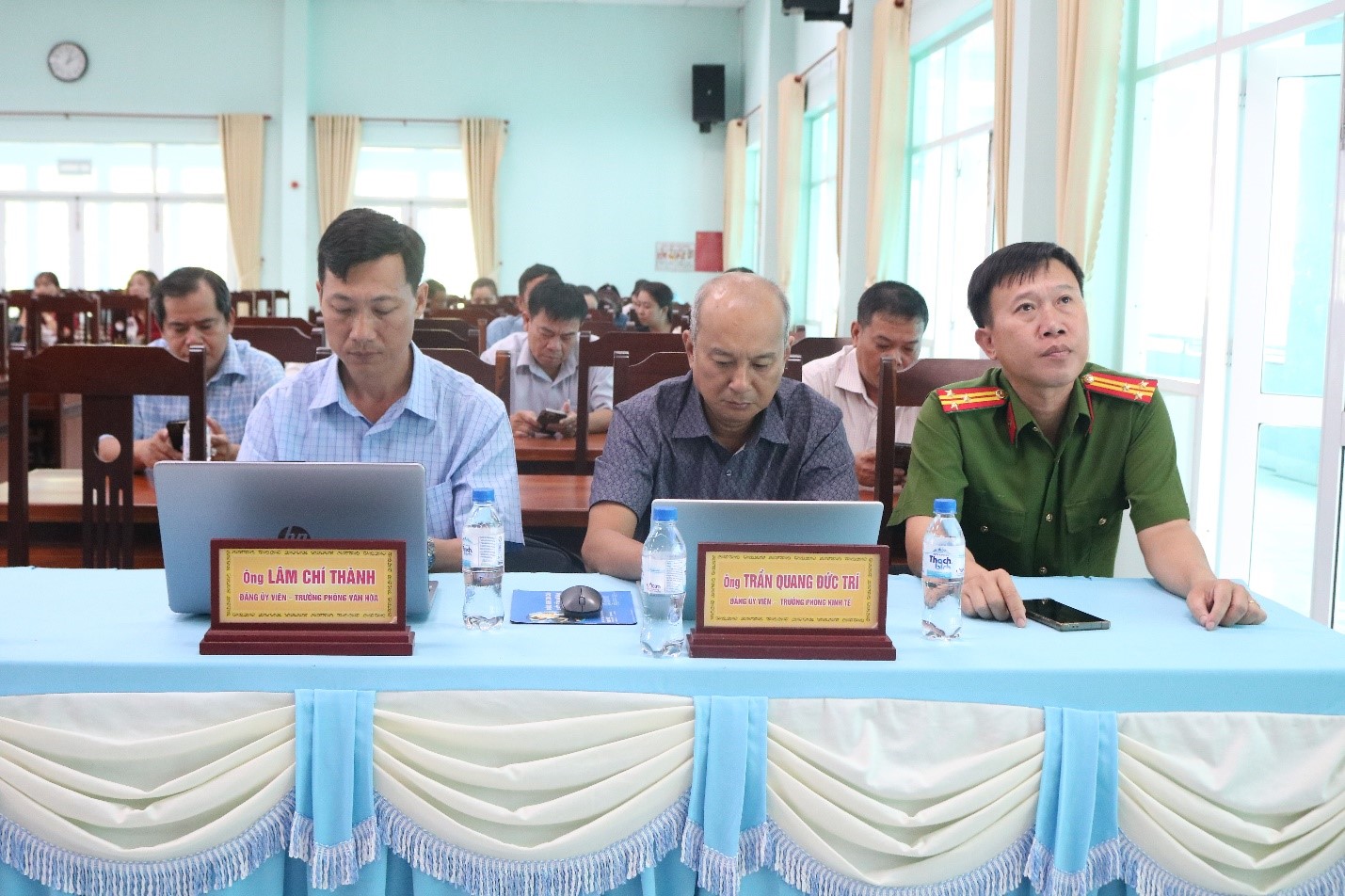 Tại điểm cầu xã An Châu có đồng chí Đặng Thị Hoa Rây - Tỉnh ủy viên, Bí thư Đảng ủy, Chủ tịch HĐND xã chủ trì hội nghị; đồng chí Lê Hồ Ngọc Trung – Phó Bí thư Thường trực Đảng ủy xã; đồng chí Hồ Hữu Tài – Phó Bí thư Đảng ủy, Chủ tịch UBND xã; thành viên Ban chỉ đạo, Ủy ban bầu cử xã tham dự.