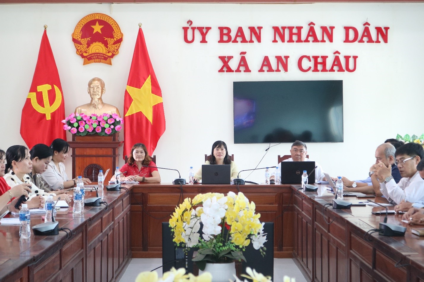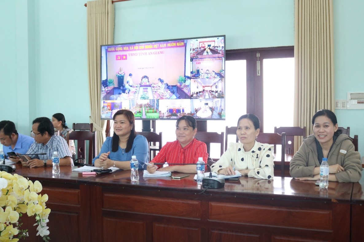 Tham dự và chủ trì tại điểm cầu trực tuyến xã An Châu có bà Huỳnh Thị Thanh Tuyền – UVBTV Đảng ủy, Phó Chủ tịch UBND xã An Châu; lãnh đạo các phòng chuyên môn; thành viên Ban chỉ đạo liên ngành về An toàn thực phẩm xã.