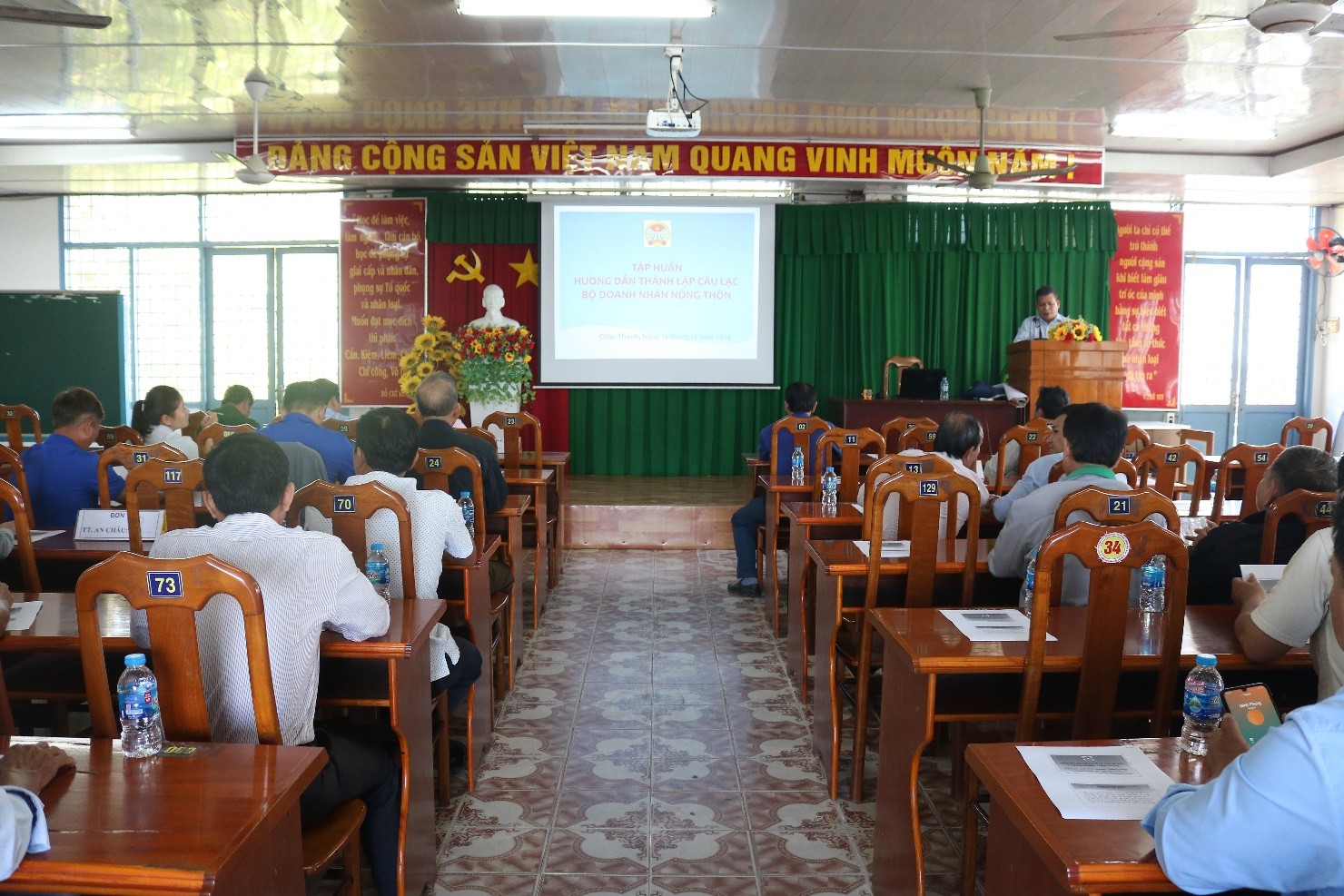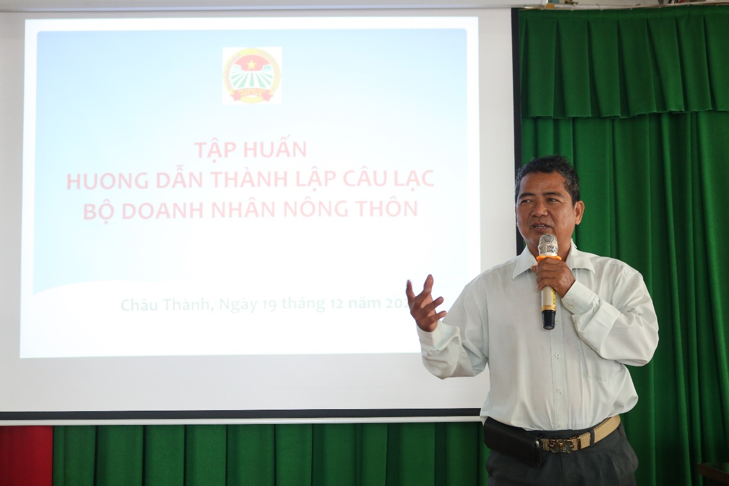 Tại lớp tập huấn, ông Nguyễn Thanh Tùng – Chuyên viên chính Hội Nông dân tỉnh An Giang thông tin, hướng dẫn cho đại biểu về chức năng, nhiệm vụ, phạm vi hoạt động, đối tượng, điều kiện tham gia, quyền hạn của các thành viên khi tham gia Câu lạc bộ Doanh nhân nông thôn. Chức năng của Câu lạc bộ là tạo điều kiện thuận lợi cho các thành viên học hỏi, trao đổi kinh nghiệm và hỗ trợ lẫn nhau trong sản xuất nông nghiệp, cây trồng, vật nuôi, góp phần xây dựng nền nông nghiệp theo Đề án tái cơ cấu của địa phương; cổ vũ, động viên và hỗ trợ các thành viên là nông dân trẻ khởi nghiệp và lập nghiệp; tìm kiếm và mang lại các quyền lợi về vật chất, tinh thần cho các thành viên Câu lạc bộ; đồng thời, hỗ trợ địa phương trong việc thực hiện các hoạt động xã hội khác…