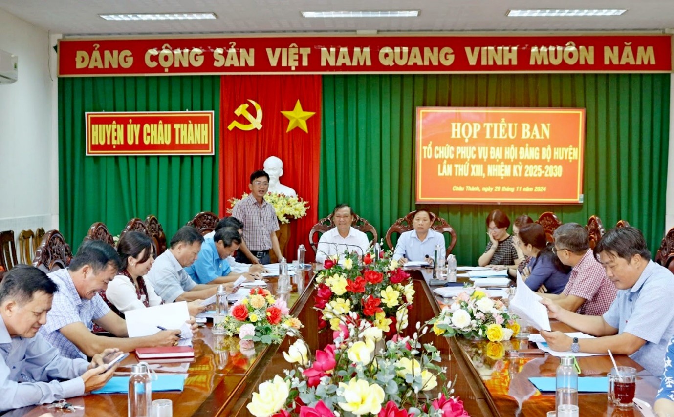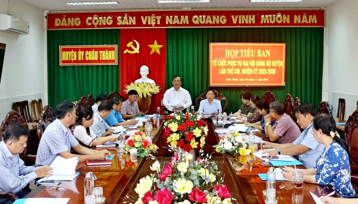 Ngày 29-11-2024, Huyện ủy Châu Thành tổ chức họp Tiểu Ban tổ chức, phục vụ Đại hội đại biểu Đảng bộ huyện lần thứ XIII, nhiệm kỳ 2025-2030. Đồng chí Từ Thanh Khiết - Phó Bí thư Thường trực Huyện ủy, Chủ tịch HĐND huyện dự và chỉ đạo Hội nghị. Cùng dự có đồng chí Hồ Hữu Tài - Ủy viên Ban Thường vụ Huyện ủy, Phó Chủ tịch UBND huyện.