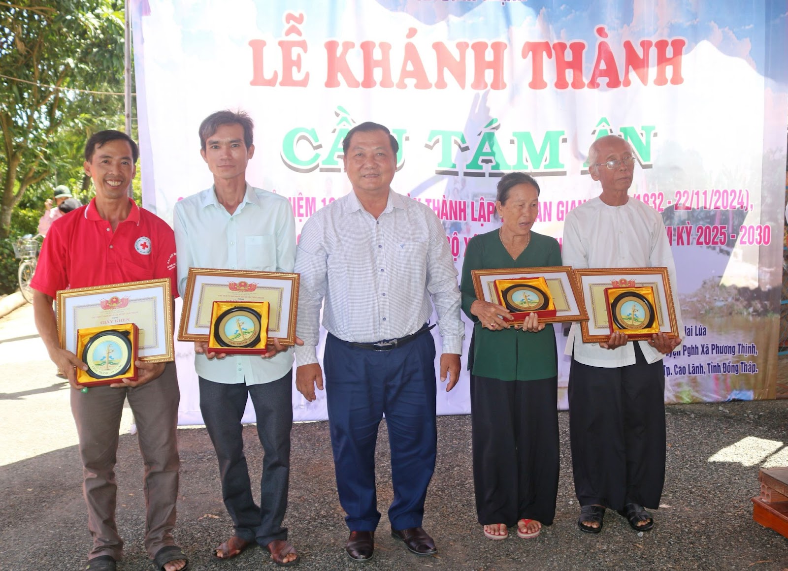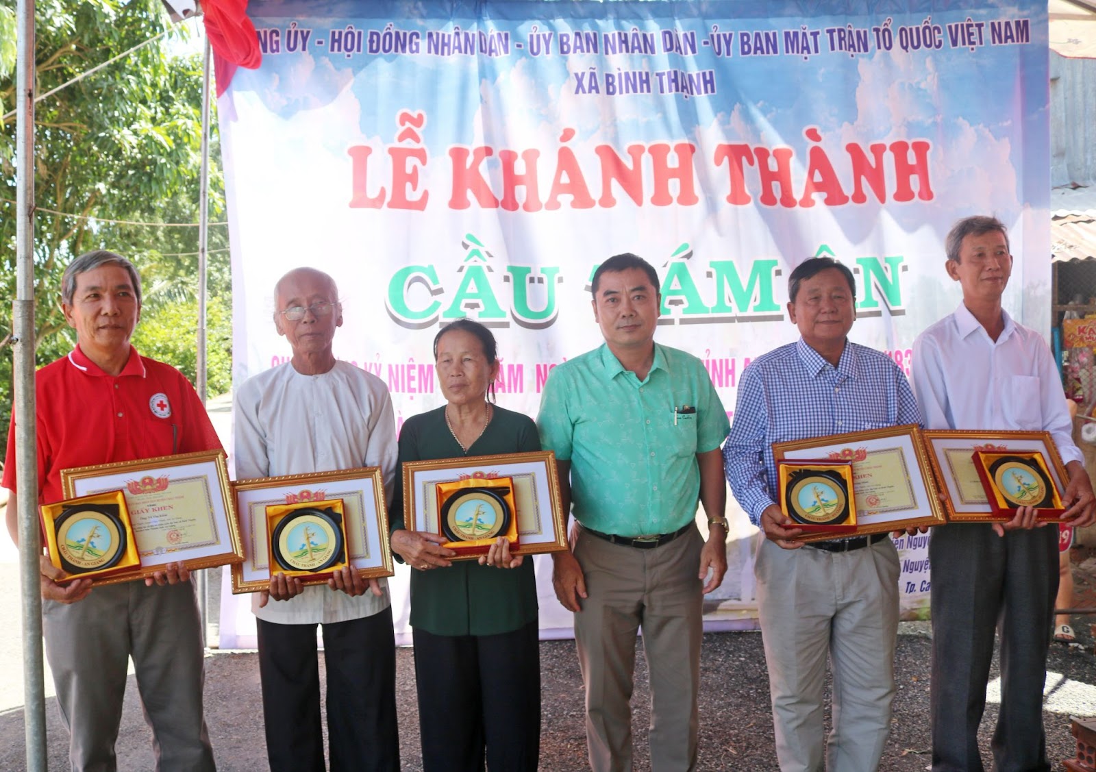 Dịp này, UBND huyện Châu Thành đã tặng Giấy khen kèm logo cho hai tập thể và 10 cá nhân vì đã có thành tích trong công tác xã hội từ thiện trên địa bàn xã Bình Thạnh, huyện Châu Thành, tỉnh An Giang; UBND xã Bình Thạnh tặng giấy khen và quà cho 22 cá nhân vì đã có có thành tích trong việc vận động xây dựng cầu Tám Ân.