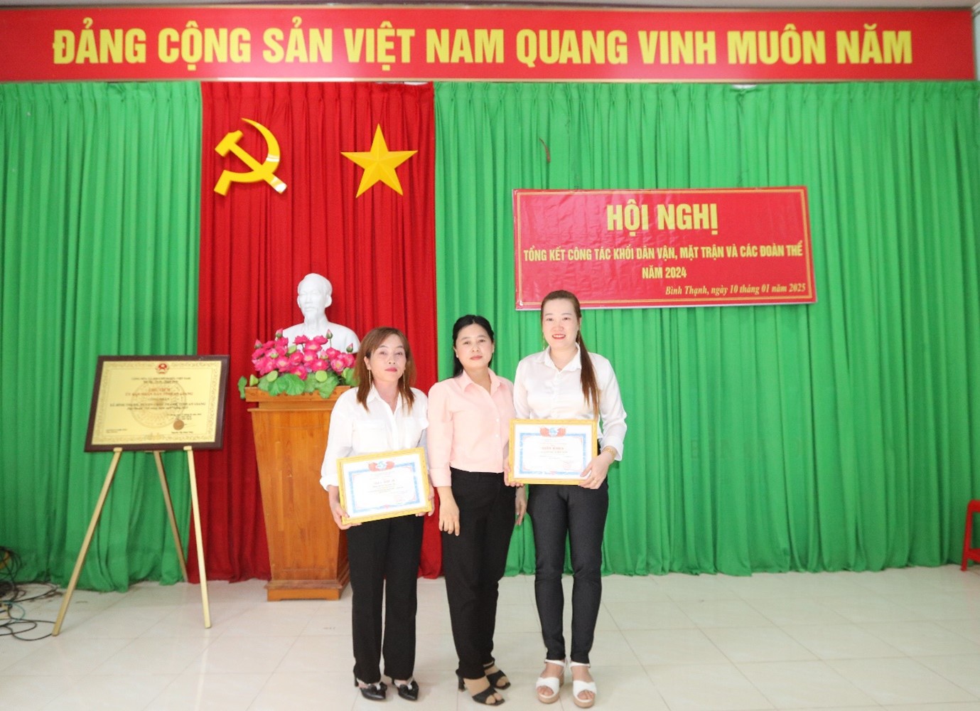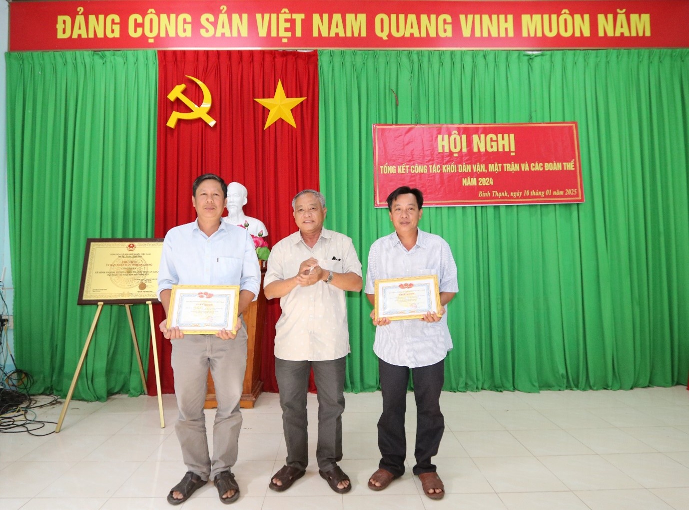 Đảng ủy xã Bình Thạnh tặng Giấy khen cho 03 tập thể vì có thành tích “Hoàn thành xuất sắc nhiệm vụ trong công tác Dân vận” năm 2024