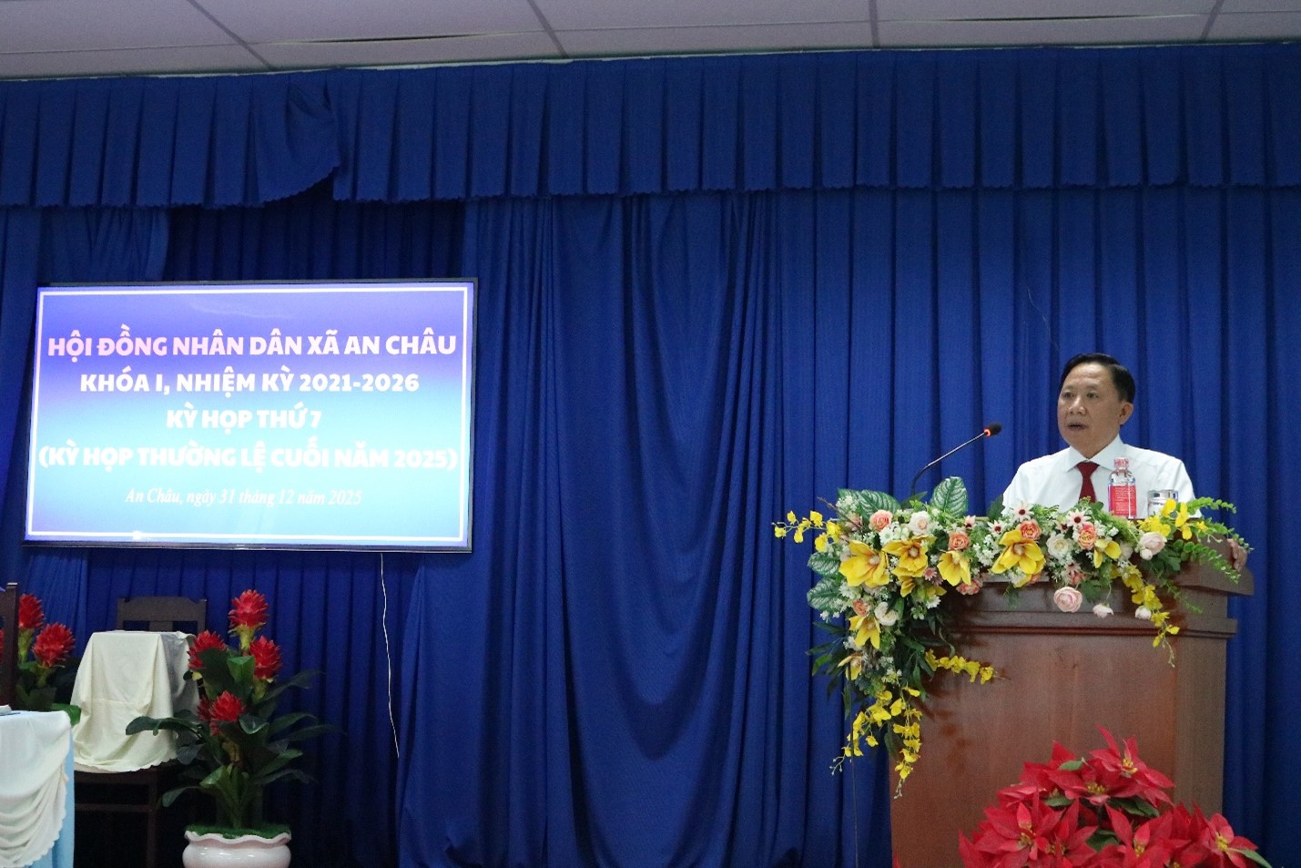 Sáng ngày 31-12-2025, Hội đồng nhân dân xã An Châu khóa I, nhiệm kỳ 2021-2026 tổ chức Kỳ họp thứ 07 (kỳ họp thường lệ cuối năm) nhằm đánh giá tình hình thực hiện nhiệm vụ phát triển kinh tế – xã hội, quốc phòng – an ninh năm 2025; triển khai nhiệm vụ năm 2026 và giai đoạn 2026 – 2030.