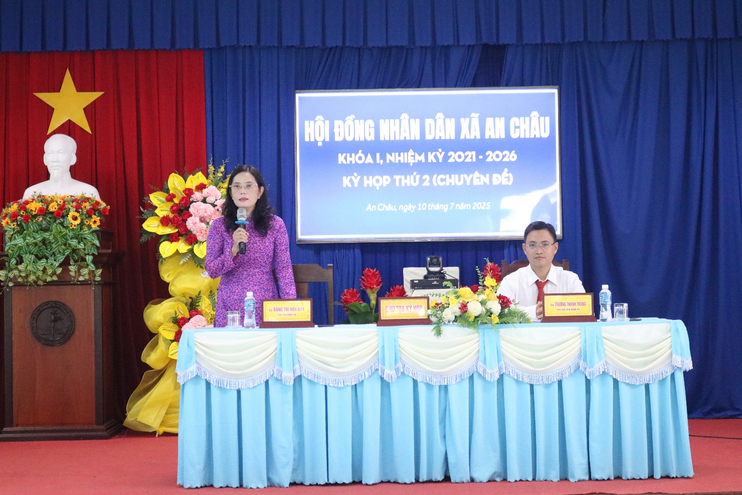 Chiều ngày 10-07-2025, Hội đồng nhân dân xã An Châu tổ chức Kỳ họp lần thứ 2 (chuyên đề), nhiệm kỳ 2021 -2026. Bà Đặng Thị Hoa Rây – Tỉnh ủy viên, Bí thư Đảng ủy, Chủ tịch Hội đồng nhân dân xã An Châu; ông Lê Hồ Ngọc Trung – Phó Bí thư Thường trực Đảng ủy xã; ông Hồ Hữu Tài – Phó Bí thư Đảng ủy, Chủ tịch UBND xã; ông Trương Thành Trung – UVBTV Đảng ủy, Phó Chủ tịch Hội đồng nhân dân xã; cùng các Đại biểu HĐND xã tham dự.