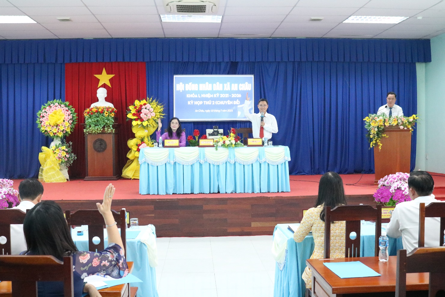 Tại cuộc họp, Đại biểu Hội đồng nhân dân xã đã biểu quyết thông qua 02 Nghị quyết: Nghị quyết về việc phê chuẩn dự toán thu ngân sách nhà nước trên địa bàn, thu chi ngân sách địa phương năm 2025 trên địa bàn xã An Châu; Nghị quyết về việc chuyển đổi khóm thuộc Thị trấn An Châu (trước sắp xếp) thành ấp thuộc xã An Châu, tỉnh An Giang.