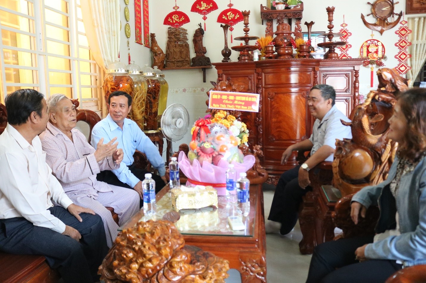 Tiếp đó, Đoàn công tác cũng đã đến thăm, tặng quà cán bộ hưu trí ngành y, đồng chí Phó Bí thư Thường trực Đảng ủy xã Lê Hồ Ngọc Trung trân trọng những đóng góp của các chú trong thời gian công tác tại địa phương, đồng thời gửi lời chúc sức khoẻ đến cá nhân và gia đình, mong muốn cán bộ hưu trí tiếp tục đóng góp tích cực cho sự nghiệp chăm sóc sức khỏe nhân dân địa phương, nêu gương sáng cho đội ngũ y, bác sĩ trẻ học tập noi theo.