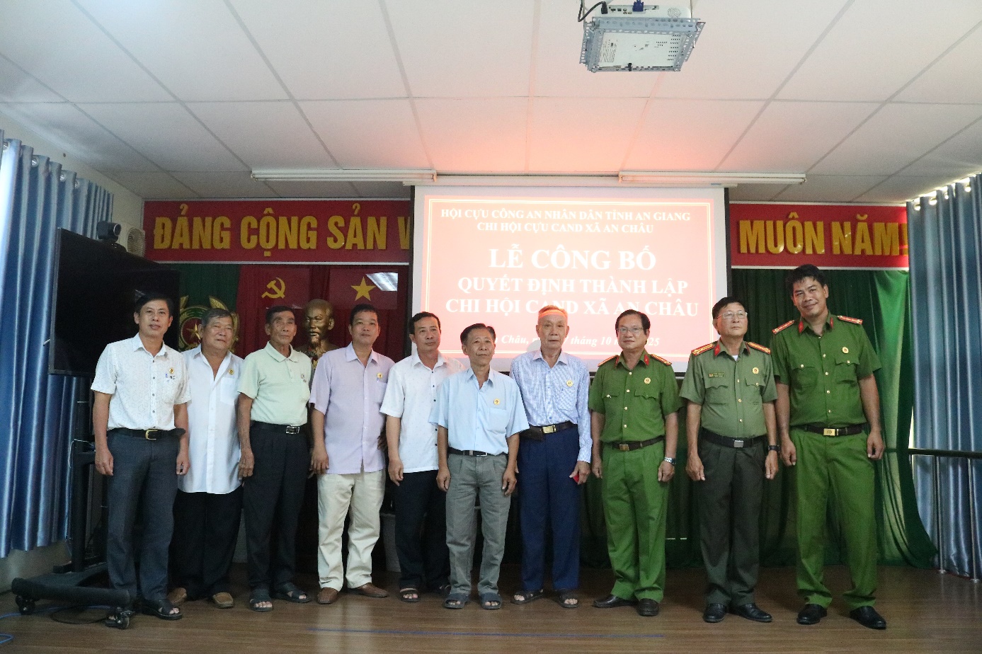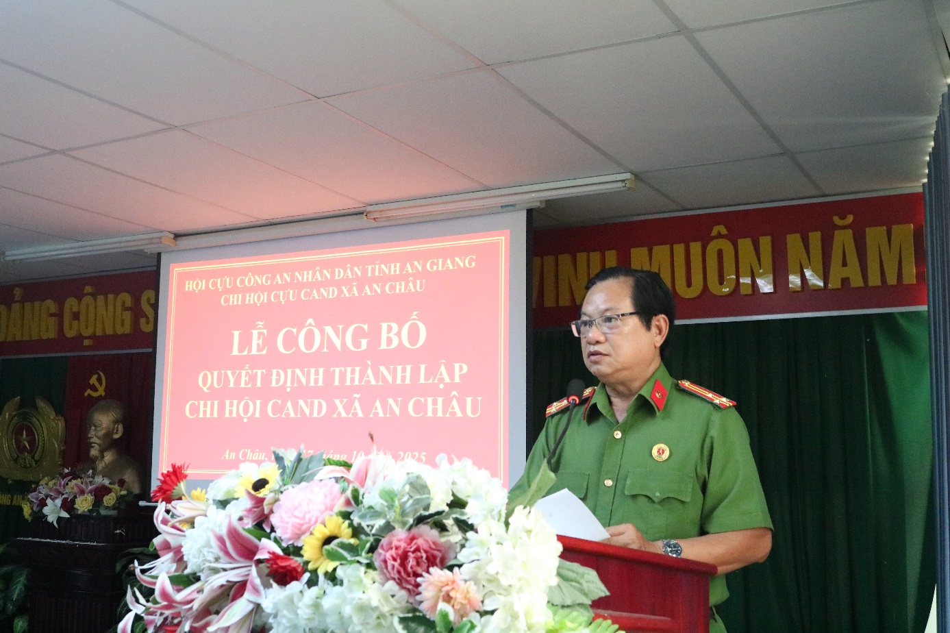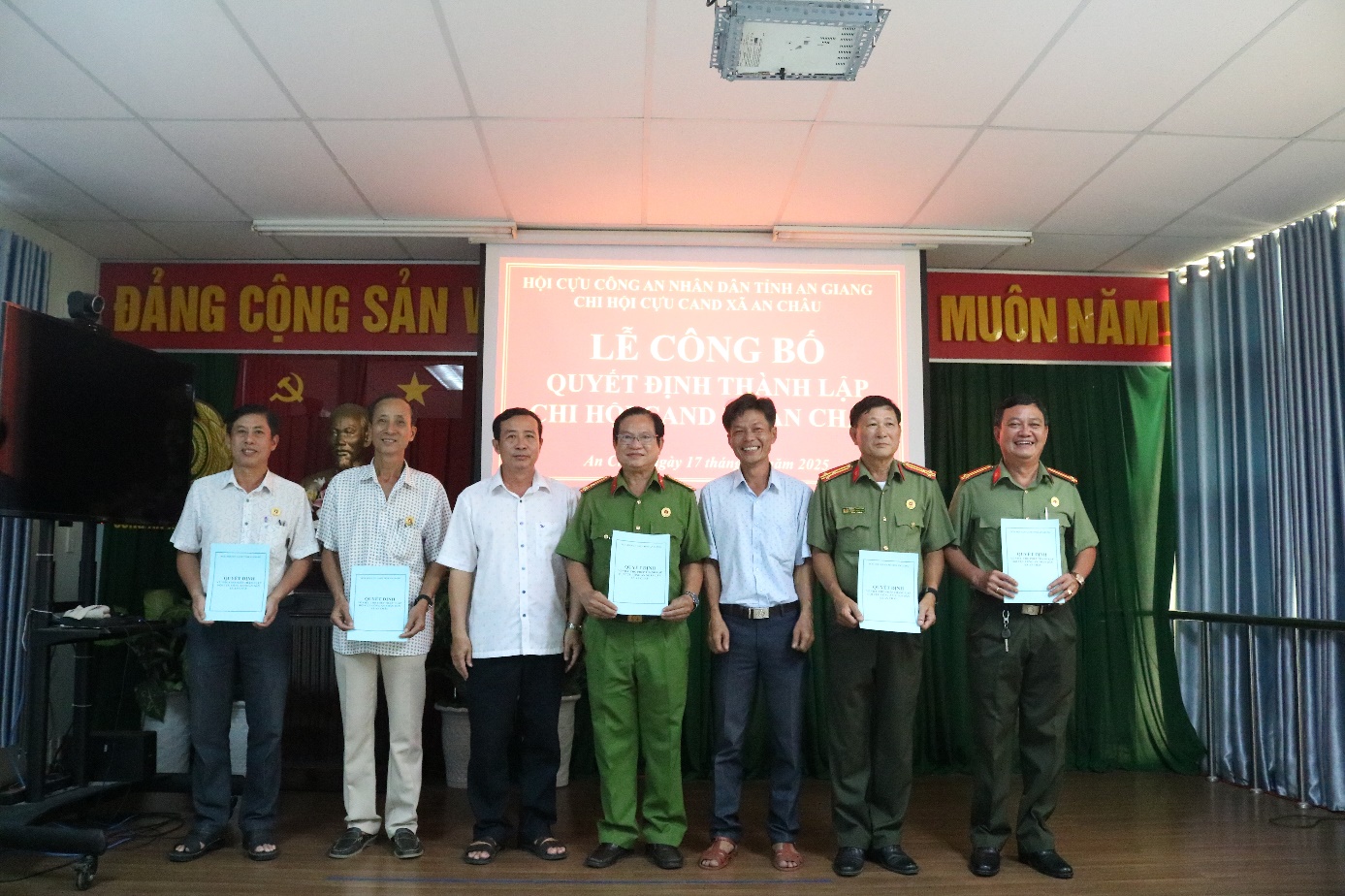 Hội nghị đã công bố Quyết định thành lập Chi hội Cựu Công an nhân dân xã An Châu và Quyết định chỉ định Chi hội trưởng, Chi hội phó. Thượng tá Đoàn Minh Đức – Nguyên chủ tịch Hội Cựu CAND huyện Châu Thành (cũ) được chỉ định giữ chức Chi hội trưởng Chi hội Cựu Công an nhân dân xã An Châu.