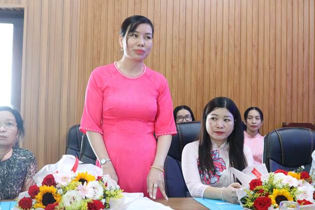 Hiệu trưởng Trường Mẫu giáo Vĩnh Hanh chia sẻ quyết tâm tại buổi lễ