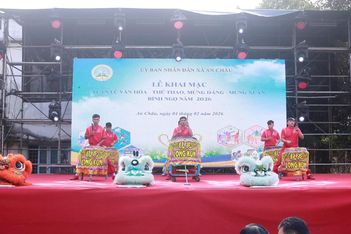 Tuần lễ Văn hóa - Thể thao mừng Đảng, mừng Xuân Bính Ngọ 2026 gồm các hoạt động chính: Hội thi “Đờn ca tài tử” xã An Châu mở rộng; biểu diễn văn nghệ mừng Đảng – mừng Xuân; Hội diễn Lân sư rồng; Triển lãm ảnh nghệ thuật thành tựu kinh tế - xã hội xã An Châu; các hoạt động thể thao quần chúng như: Bóng đá, Bóng chuyền, Cầu lông, Pickleball ...