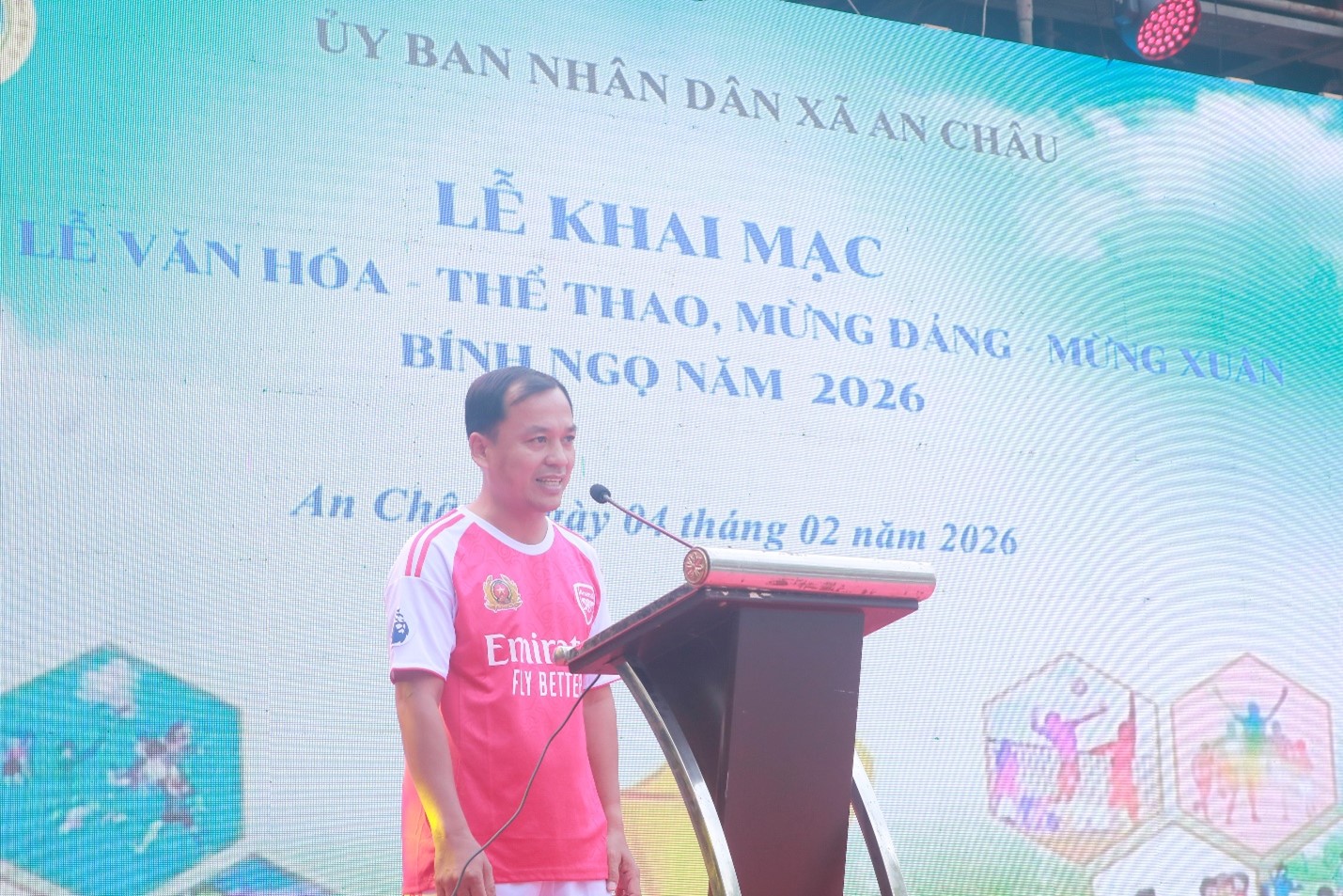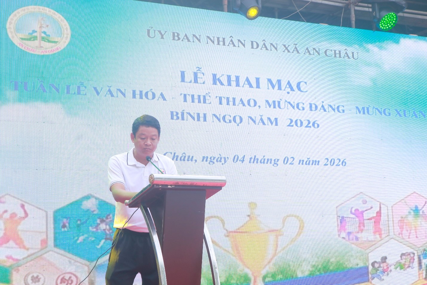 Sáng ngày 04-02-2026, Ủy ban nhân dân xã An Châu tổ chức lễ Khai mạc Tuần Lễ Văn hóa - Thể thao mừng Đảng, mừng Xuân Bính Ngọ năm 2026. Ông Hồ Hữu Tài - Phó Bí thư Đảng ủy, Chủ tịch UBND xã; ông Trương Thành Trung – Ủy viên Ban Thường vụ, Phó Chủ tịch HĐND xã; bà Huỳnh Thị Thanh Tuyền - Ủy viên Ban Thường vụ, Phó Chủ tịch UBND xã; ông Lê Thanh Sơn – Giám đốc Trung tâm Dịch vụ Tổng hợp xã; cùng các đại biểu lãnh đạo phòng chuyên môn, các ấp và Tổ Trọng tài, Huấn luyện viên, vận động viên về tham dự.
